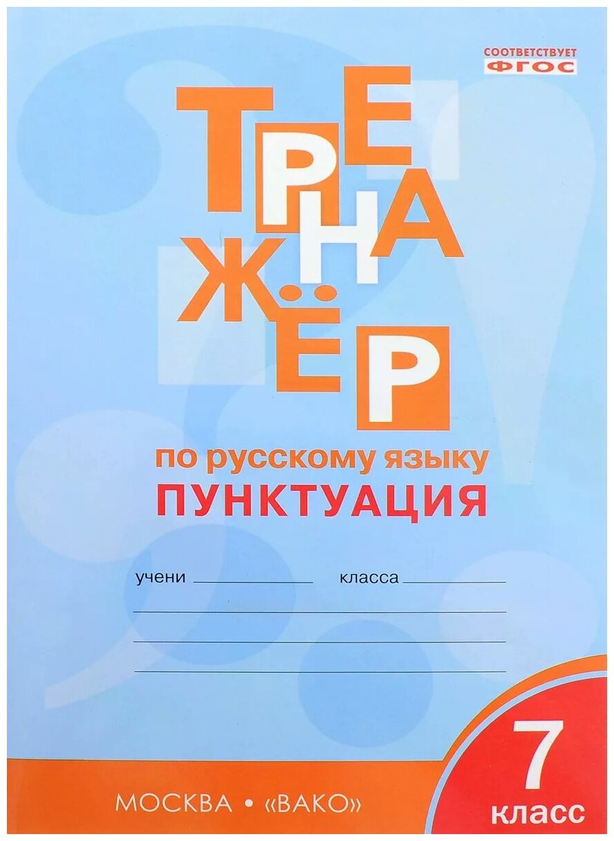 Пособие представляет собой сборник упражнений по пунктуации для 7 класса, составленный в соответствии с требованиями ФГОС. Тренажёр может использоваться при обучении по любым учебникам, входящим в федеральный перечень.