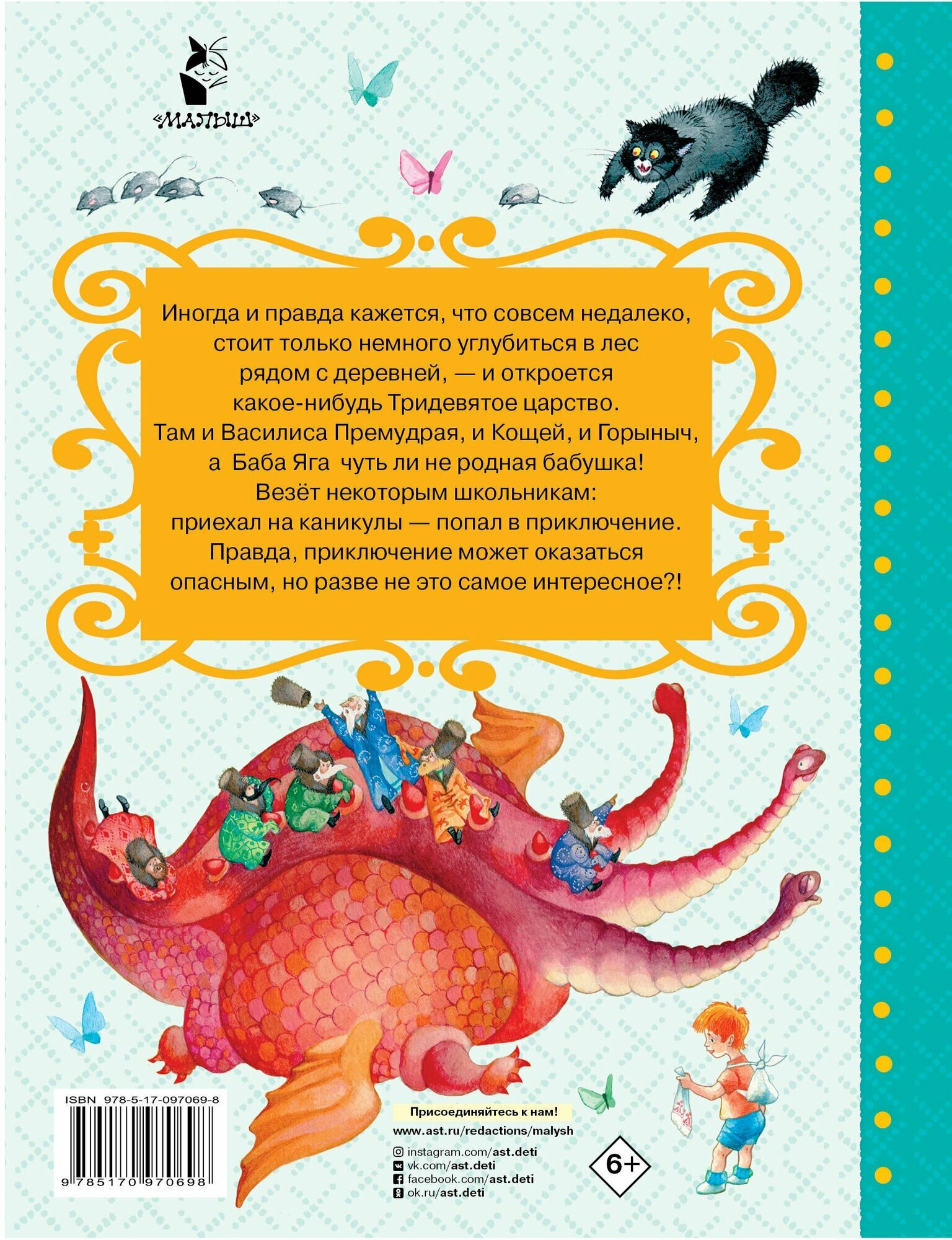 Приехать на каникулы к бабушке в деревню и оказаться в сказочном царстве, где живут Змей Горыныч, Кощей Бессмертный, Кикимора болотная, кот Баюн и другая сказочная малосимпатичная публика,- такое не каждому мальчику понравится. А вот Сидорову Мите всё это очень понравилось. Потому что он не только увидел то, о чём читал в книгах, но и сумел помочь добрым сказочным героям: Василисе Премудрой, Дядюшке Домовому и замечательному царю Макару. Без него они бы пропали. Для младшего школьного возраста.