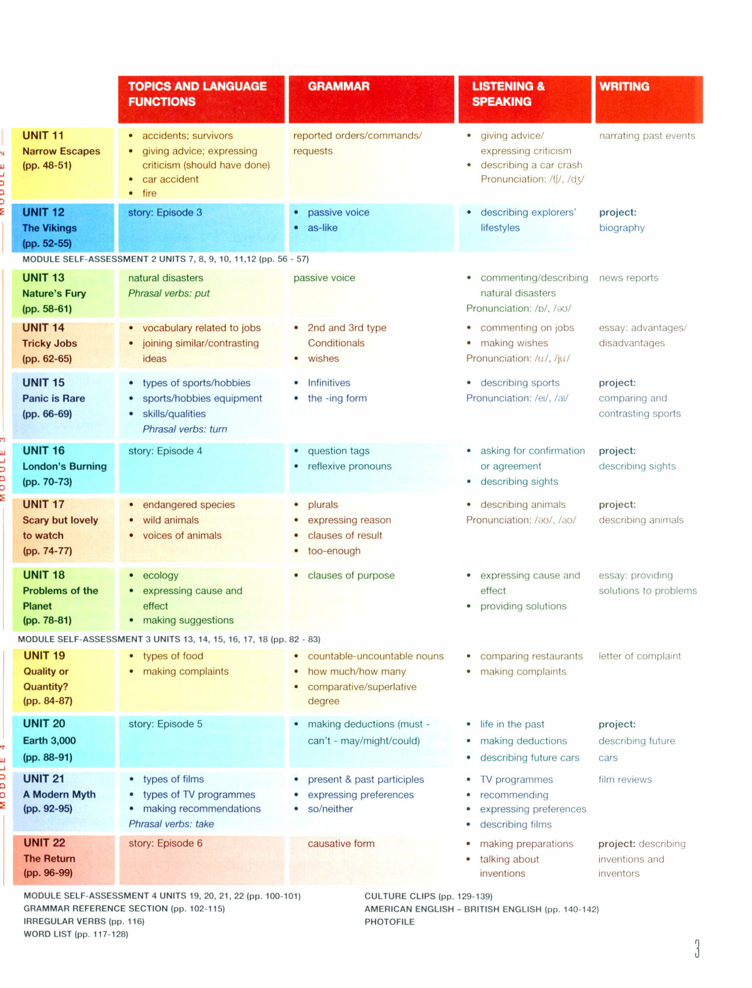 "Enterprise 3: Pre-Intermediate" consists of four modules and is the third of a four-level English course. It is specially designed to motivate and involve students in effective learning. The course provides systematic preparation for all the skills required for successful communication both in written and spoken form.
