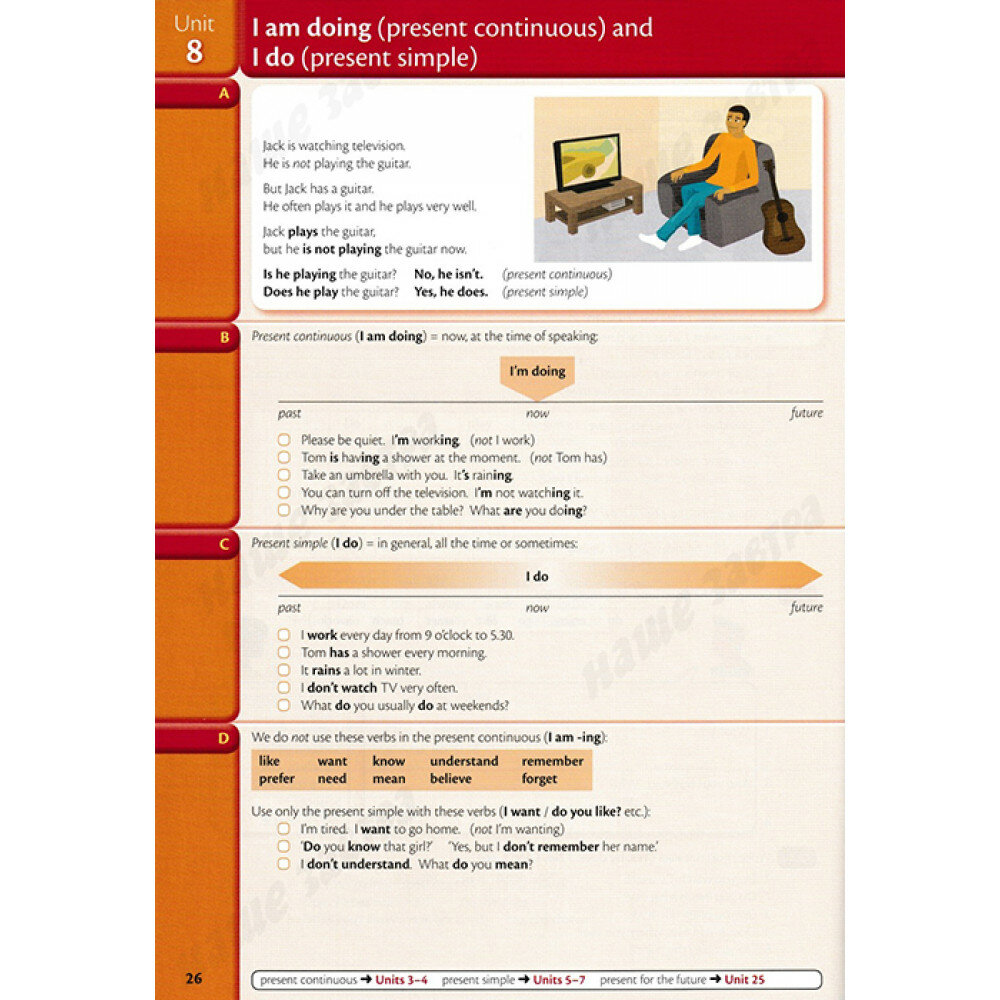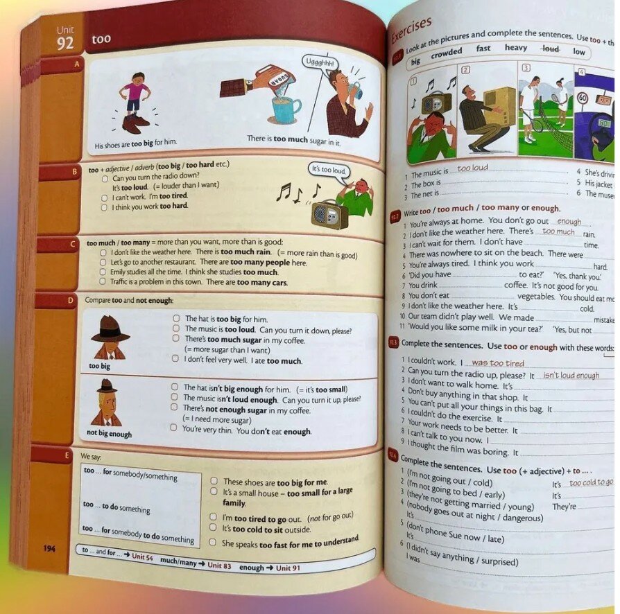 Идеальный учебник, все правила на английском, коротко и ясно!Половина разворота - правила и примеры, вторая половина - задания для вас по пройденному материалу. В конце книги доп. задания и правильные ответы. Цветные иллюстрации помогут также приобщить к изучению детей (они любят книжки с картинками).Рекомендую для индивидуальных занятий с репетитором. На ютубе есть серия видео по этой грамматике. Называется - ok english. Там по каждому уроку (юните) девушка Елена (преподаватель английского) объясняет все на русском языке, подробно.
