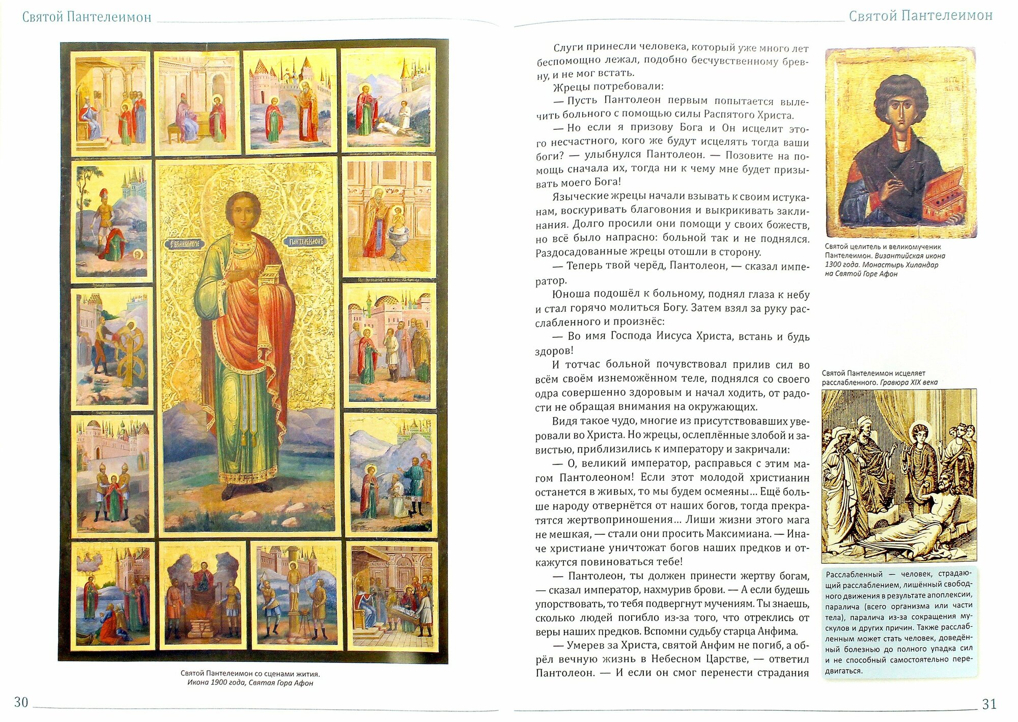 Издание книги "Святой великомученик и целитель Пантелеимон" приурочено к 1000-летию русского святогорского монашества и к визиту Святейшего Патриарха Московского и всея Руси Кирилла и Президента России В. В. Путина на торжества на Святой Горе Афон в мае 2016 года, - отмечает директор Издательства иерей Алексей Кондрашов. - В прекрасно иллюстрированной книге, автора Александра Велько, излагается не только Житие святого Пантелеимона Целителя и описание его чудес, но и история почитания святого и святынь, связанных с ним. Отдельные главы книги посвящены удивительной истории знаменитого Свято-Пантелеимонова монастыря на Горе Афон и храмов Святого Пантелеимона в Никомедии и на Новом Афоне. Описаны также древние храмы в честь святого Целителя, сохранившиеся до наших дней, и вновь построенные, находящиеся во многих странах мира.