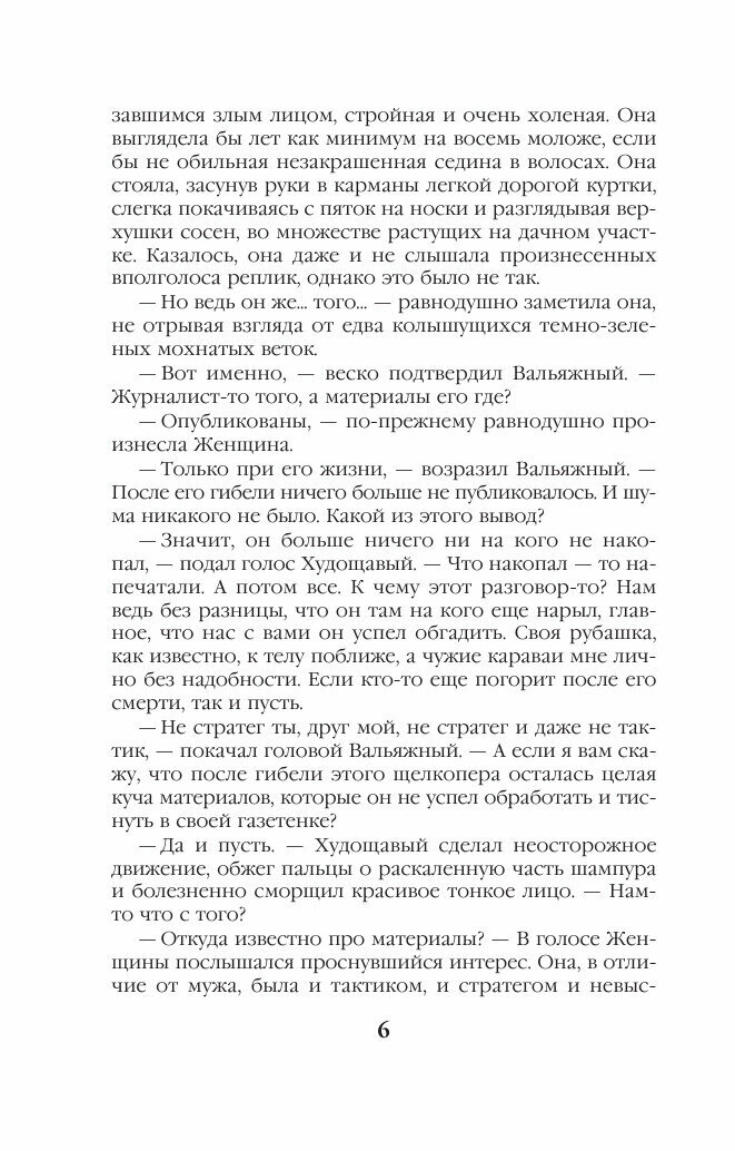 Книга написана в 2004 году, но я почему-то познакомилась с ней только сейчас.... Как всегда очень интересный детектив от, на мой взгляд, лучшего писателя этого жанра в России.Рассуждения писателя о пенсионном возрасте, Насте Каменской 43 и она в депрессии по этому поводу. Она боится старости, начинает сомневаться в своем профессионализме. Много интересных героев, характеры которых также вызывают интерес и хорошо раскрыты!