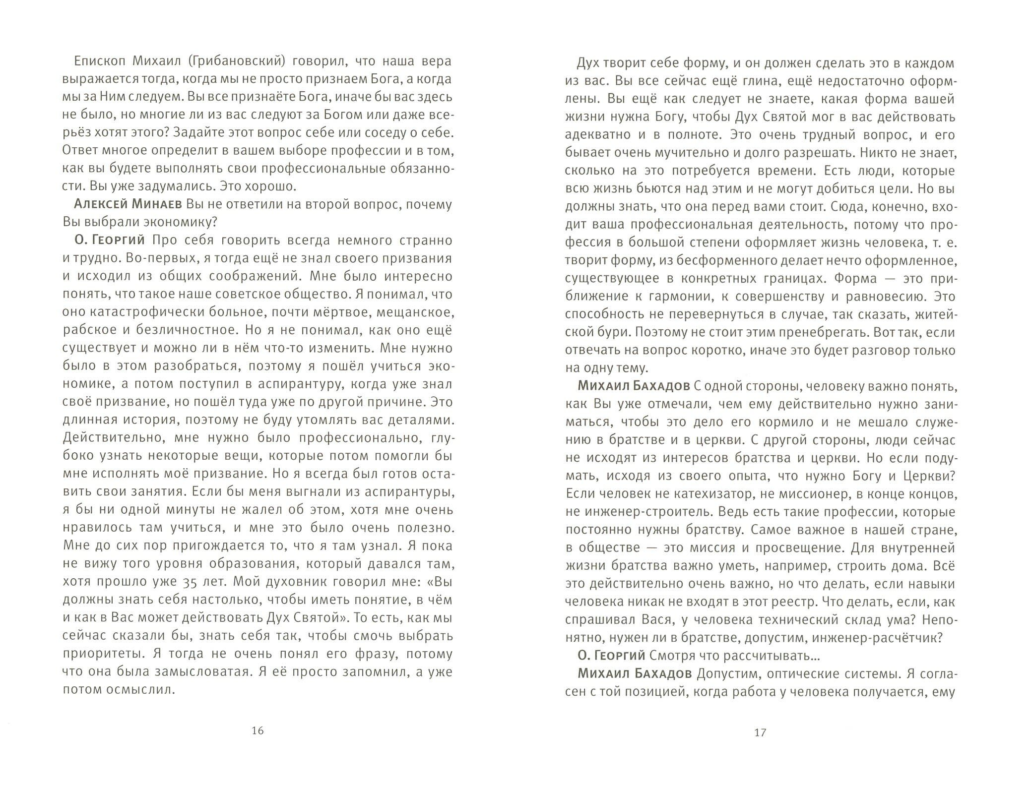 Как известно, профессию мы обычно выбираем в юном возрасте, перед поступлением в вуз или перед его окончанием. Если спросить у любого современного молодого человека, каковы его критерии будущей профессии, то наверняка в ответ услышишь: интерес, или престижность, или хороший заработок, или все это вместе взятое. Но может ли христианин, человек служащий, при выборе профессии опираться на критерии личной выгоды? "Ваша задача, - говорит в своей беседе свящ. Георгий Кочетков с членами молодежного "Круга" и подростками Преображенского братства, - сделать так, чтобы Бог располагал вами, но и вам предполагать не запрещено". В разговоре, из которого состоит книга, участвуют именно те, кому предстоит еще делать в своей жизни выбор, и важно, чтобы он был сделан не с индивидуалистической позиции, а с церковной. Ребят волнуют как общие вопросы, например, кто мой ближний, какие профессии недопустимы для христианина, так и совсем конкретные: о том, как может послужить Богу инженер-расчетчик, нужны ли церкви лингвисты и психологи.