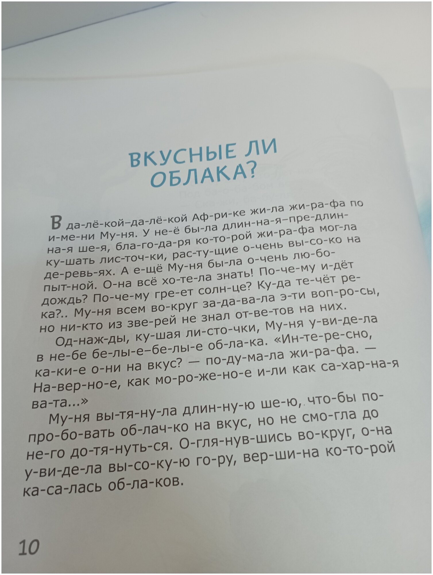 Книжка отпечатана на качественной бумаге, иллюстрации яркие, шрифт крупный. По содержанию очень интересная детям от 2-х лет и старше. Моему ребенку 3 года, очень любит слушать рассказы из этой книжки. Еще хорошо, что дети старше могу сами ее читать, слова разделены на слога, проставлены ударения.