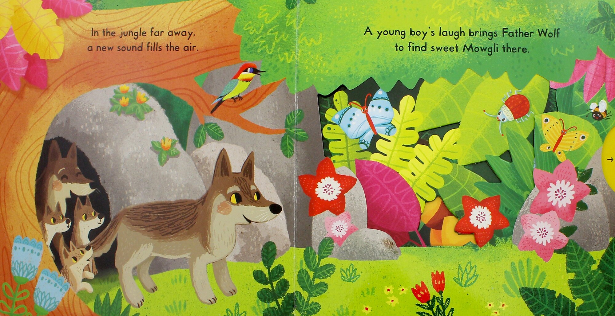 The wild adventures of Mowgli in Rudyard Kipling's The Jungle Book are well-loved, timeless tales of growing up and finding a place in the world. First Stories: The Jungle Book is a perfect introduction for young children to this classic story and its host of animal characters. Push, pull and slide mechanisms to bring the story to life and see favourite scenes in action. Mowgli, Baloo, Bagheera and of course the fearsome tiger Shere Khan are all beautifully imagined by Miriam Bos in her bold, appealing illustrations.