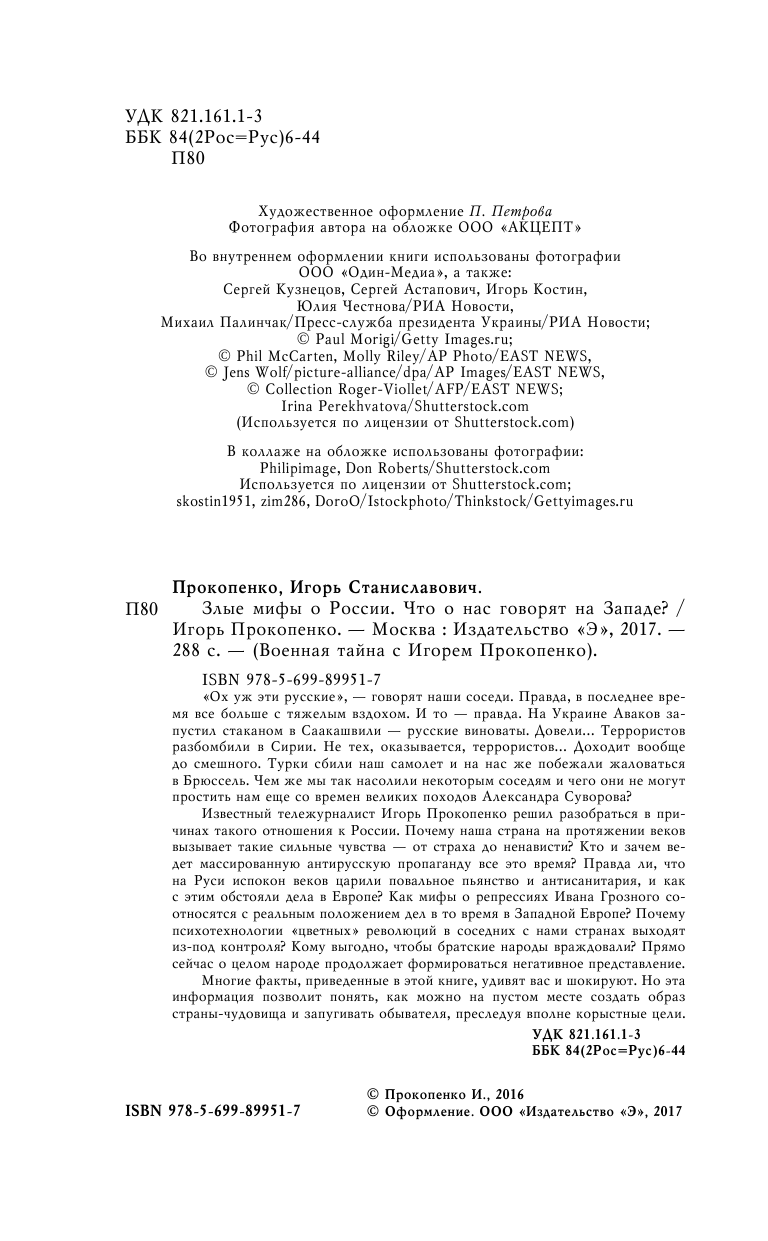 Злые мифы о России. Что о нас говорят на Западе? (Прокопенко Игорь Станиславович); ООО "Издательство "Эксмо", 2017