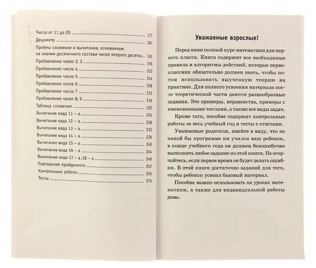 Книга оказалась настоящей наодкой, простые примеры для нарешивания, на состав числа, задачи. Я более чем довольна. Очень рекомендую для домашней работы для всем первокласников. Рисунков нет, качество бумаги так себе, но оно тут и ненадо, пишем ответы прямо в книге