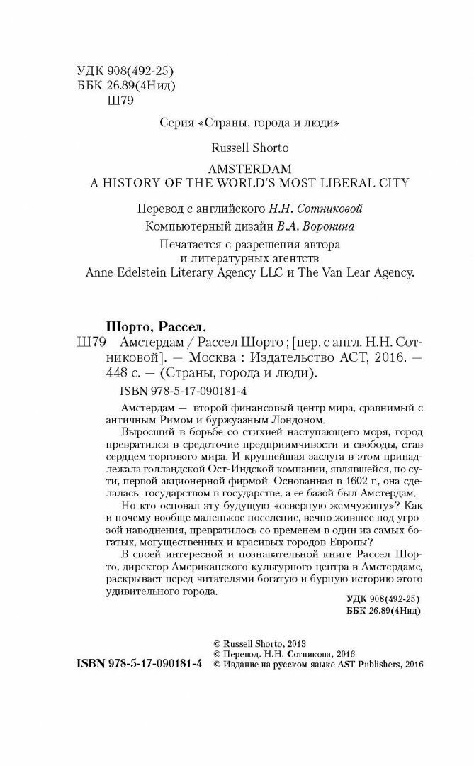 В своей интересной и познавательной книге Рассел Шорто, директор Американского культурного центра в Амстердаме, раскрывает перед читателями богатую и бурную историю этого удивительного города.
