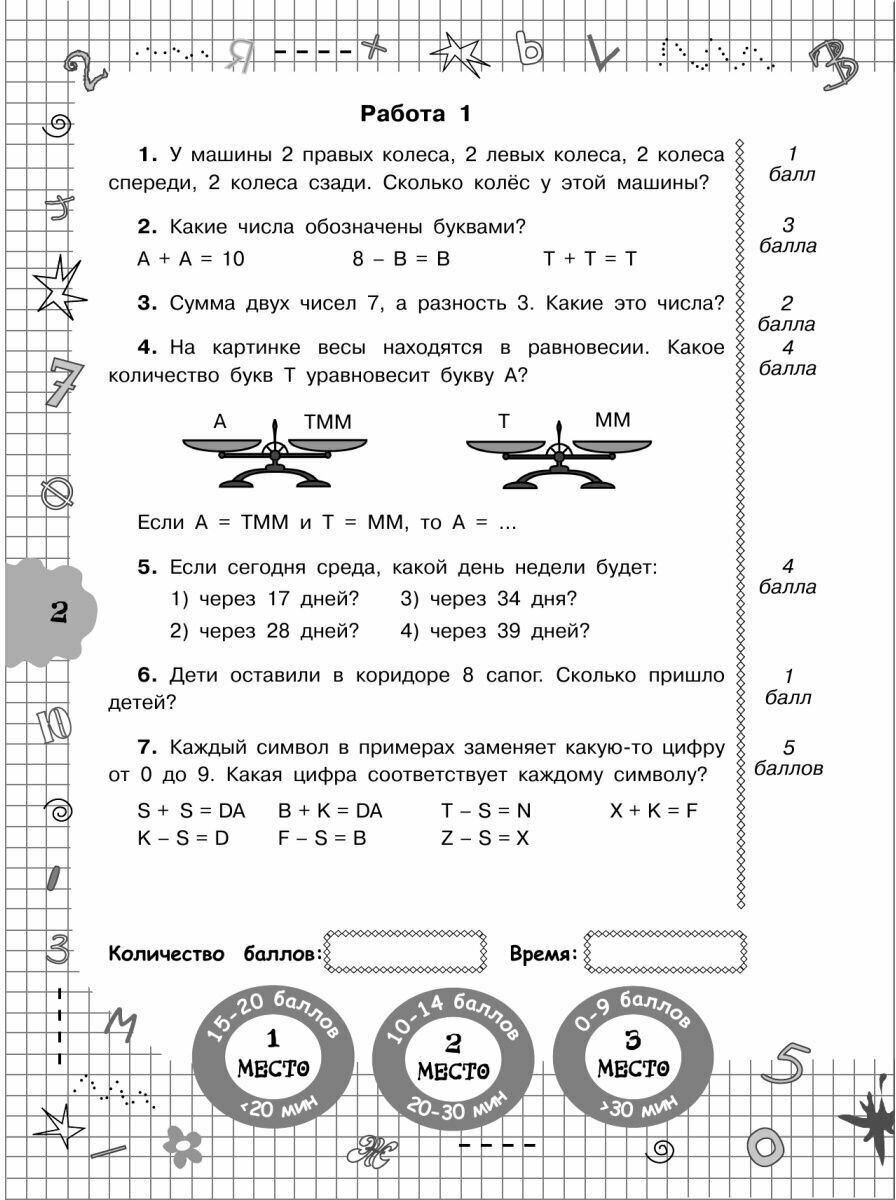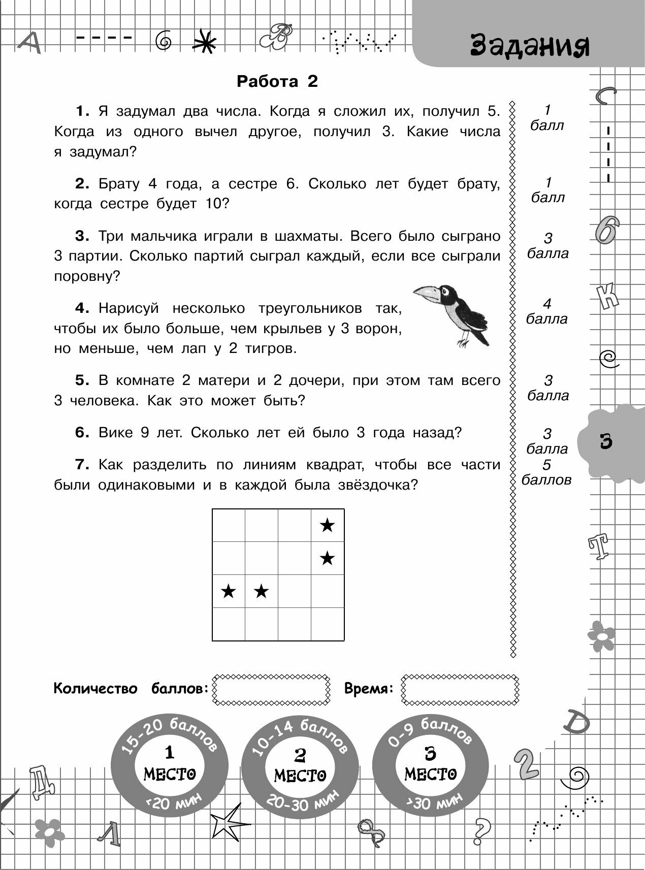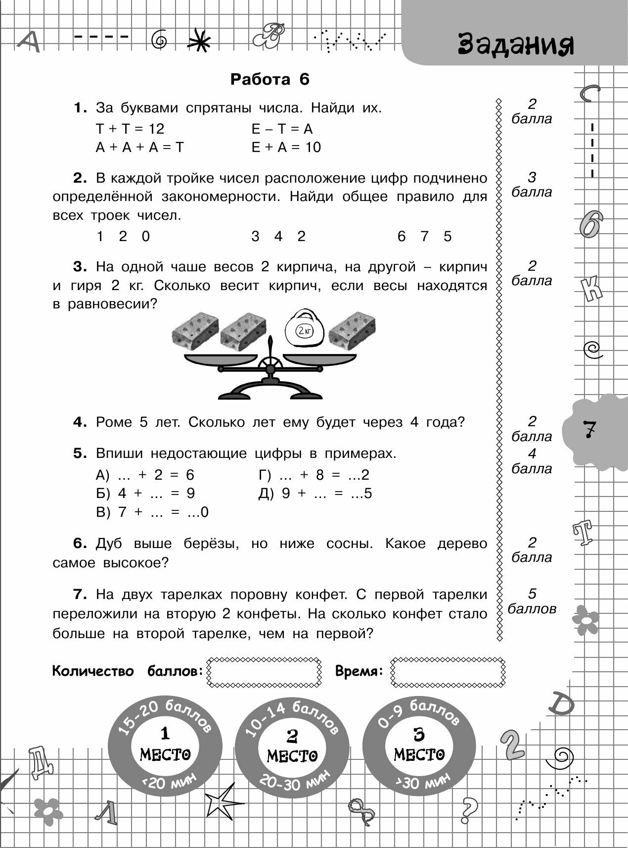 И мне и ребенку очень нравится пособие -это просто то что я искала. Очень здорово, что различные типы задач периодически встречаются снова, если что-то не получилось решить в какой-то работе, и задача была разобрана вместе со взрослым, то в последующих работах у ребенка будет еще возможность попробовать себя и проверить, действительно ли он внутренне понял решение таких задач и может воспроизвести его через несколько дней. Очень здорово что у каждой задачи выставлены балы за ее сложность, на мой взгляд неплохо, что встречаются совсем легкие задания, они поднимают боевой дух и конечно возможность занять " призовое место" очень мотивируют.