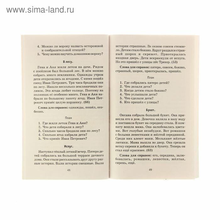 Эта книга хороша тем, что в начале подробно описаны нормативы оценки и требования, а к текстам -вопросы, и тексты идут от простого к сложному. Прекрасно изложены методики работы с книгой, это очень полезно для родителей, не имеющих педагогического образования. Она может быть полезна не только школьникам, но логопедам-афазиологам, работающими с пациентами после инсультов. Для восстановления навыков чтения, письма и связной речи. Также эта книга может служить для расширения словарного запаса, и устного пересказа больными.
