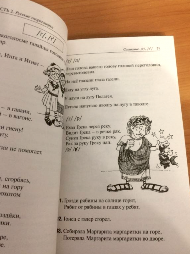 Очень классная книжка. Автор - Лаптева Елена Валерьевна. Есть даже немного смешных черно-белых иллюстраций))). Подходит и для детей и для взрослых. Скороговорки и фонетические упражнения собраны в большом количестве. Единственный недостаток книги - она в мягком переплете. Я очень довольна покупкой, давно искала что-то подобное.