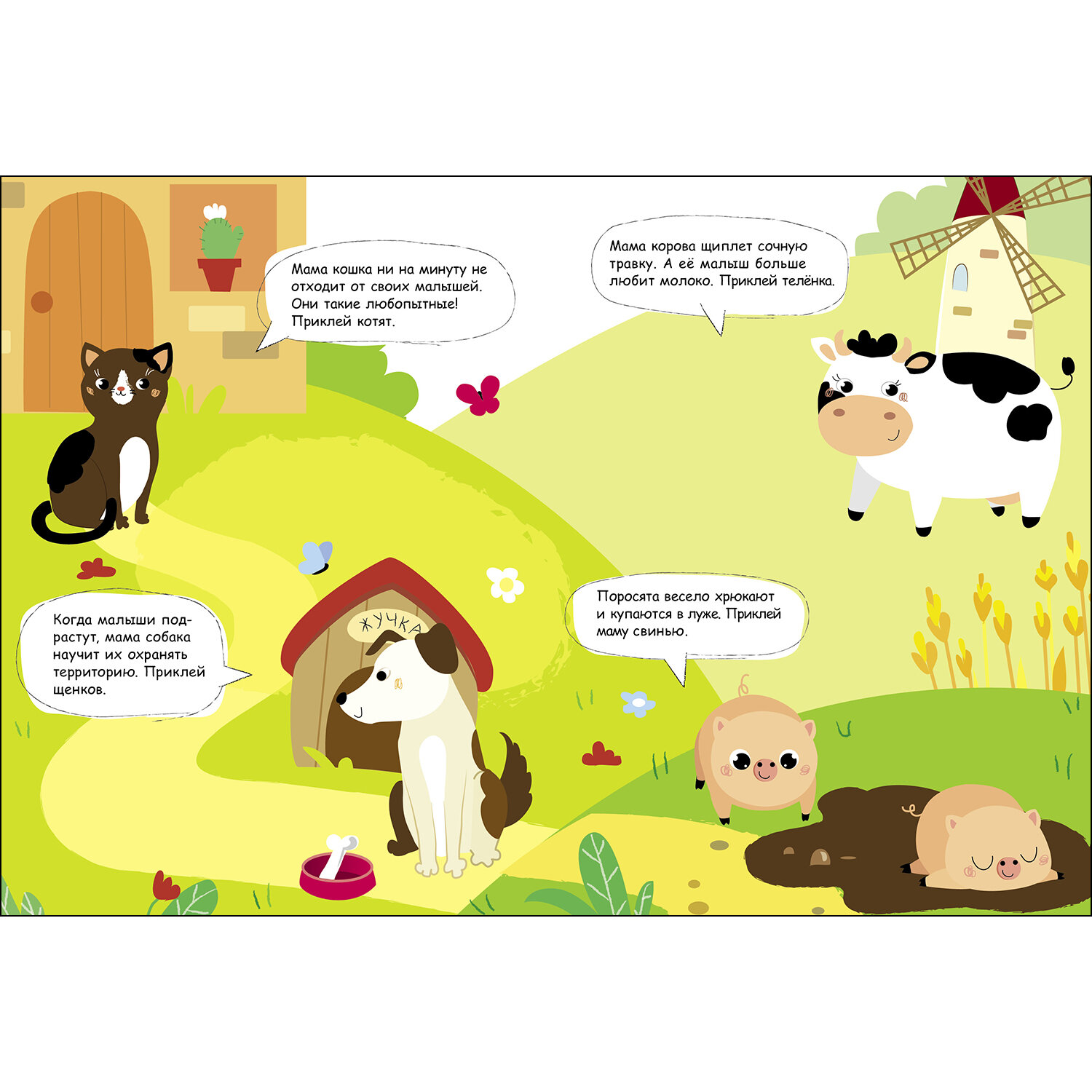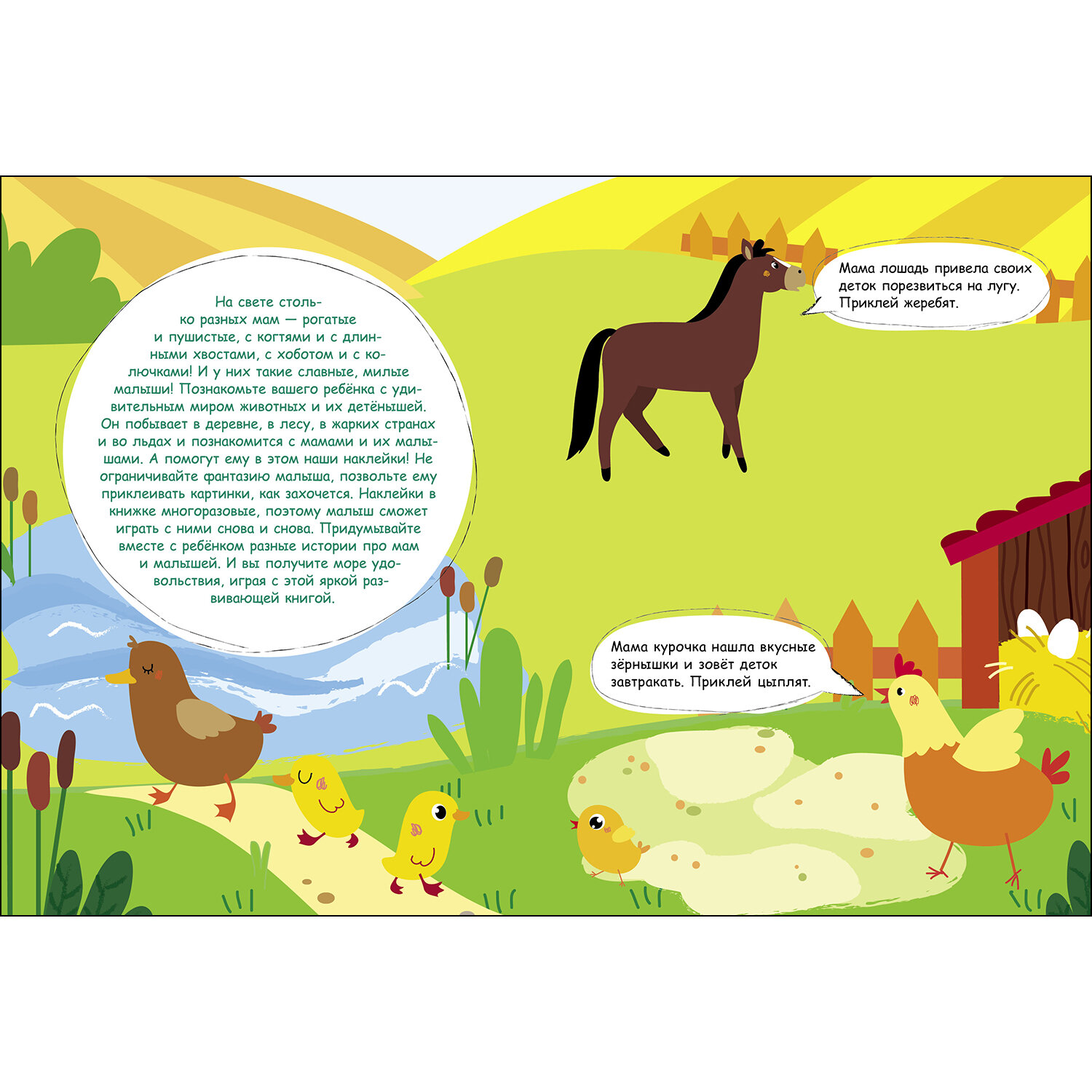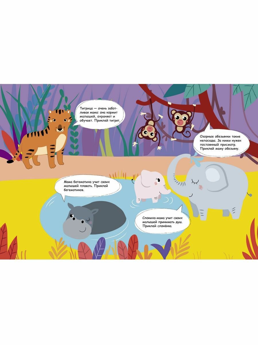 Ваш малыш ещё не знает, что у зверей тоже есть мамы и малыши? Тогда эта книжка как раз для него. Мы побываем в деревне и в лесу, в жарких странах и во льдах и познакомимся с животными и их детёнышами. А наши наклейки помогут нам в этом!