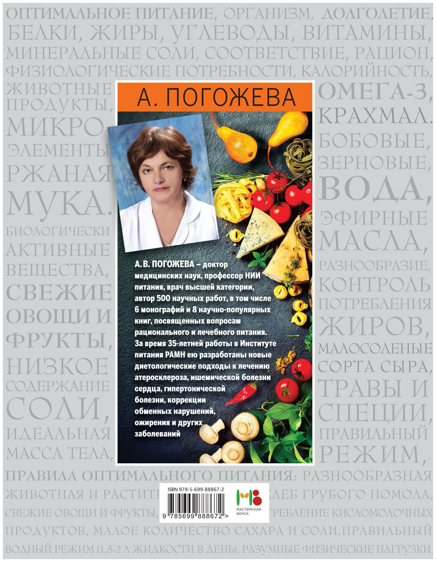Автор книги, Алла Погожева, доктор медицинских наук, уже много лет решает вопросы здорового питания. Поэтому книга уникальна своим сочетанием научных фактов, последних открытий в области питания и большим количеством рецептов, подобранных в соответствии с понятием оптимального питания. Что нужно есть каждый день, а какие продукты, насыщенные, например, белками, жирами или сахаром, лучше употреблять пару раз в неделю. Советы, рекомендации, правила сопровождают всю книгу, что однако не утяжеляет ее, а только делает более значительной.