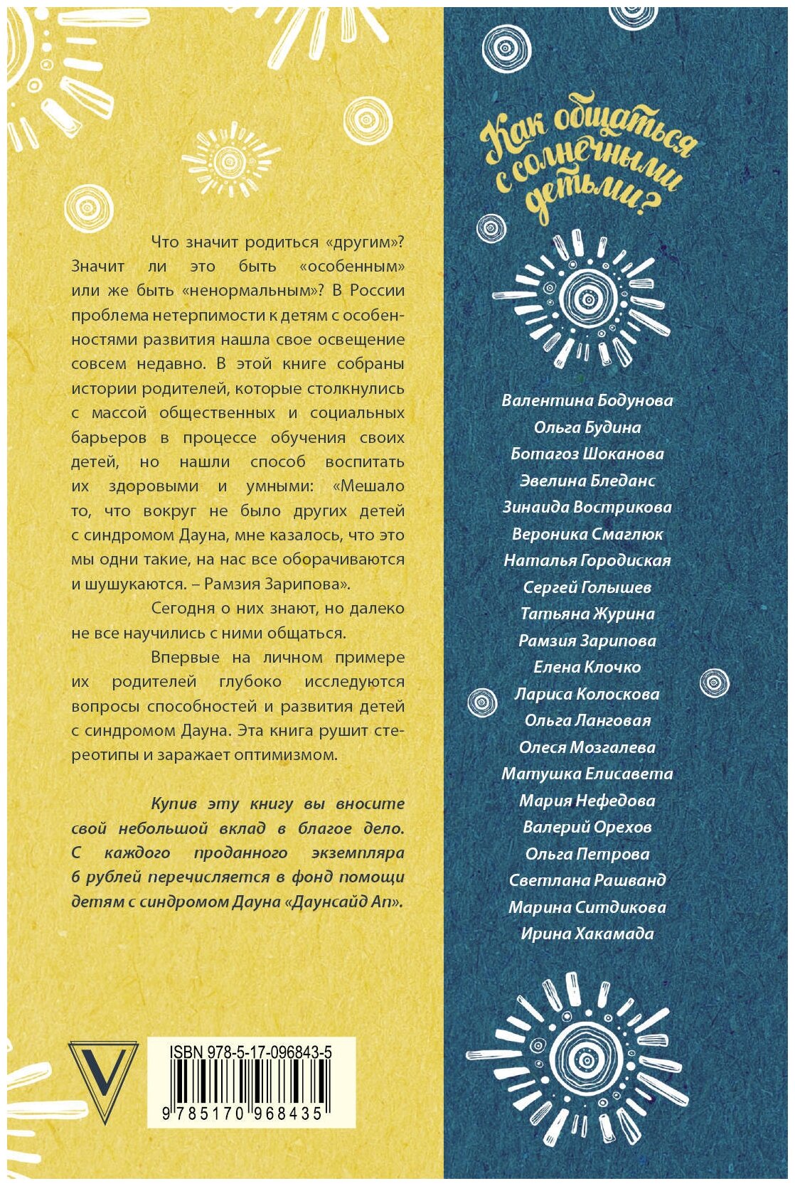 Являясь мамой «солнечного ребенка» не понаслышке знаю обо всех проблемах адаптации ребенка в обществе. Книга будет полезна в первую очередь родственникам таких деток, ведь от их правильного поведения будет зависеть то, как будут принимать ребенка, да и вас вместе с ним. Ведь в нашем обществе до сих пор твердо живет представление о родителях детей с синдромом Дауна как о деклассированных элементах – наркоманах и алкоголиках. Как преодолевать негативный стереотип, не замкнуться на своих проблемах, быть терпимее к неосведомленным, а отсюда и невежественным окружающим, развить в ребенке заложенные способности – читайте в рассказах родителей.