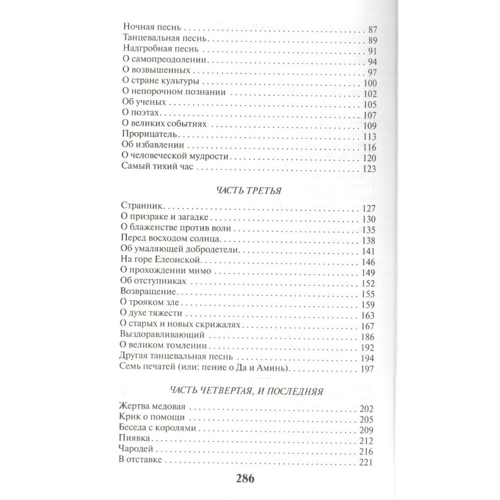 Читается сложно. Не трудно понять о чем именно идет речь, а трудно понять некоторые его фразы или выражения. Предыдущие читатели правы, книга вызывает разные эмоции. В целом мне не очень нравился сам Зратутстра. Лицемерный, больной, высокомерный. Иногда он говорил дельные вещи, но в чем то я с ним не соглашусь. Да и стиль притч мне не нравится. Книга далеко не плохая, такие произведение стоит читать для развития своей головушки и красивой речи. Точно вернусь к ней позже, возможно лет через 10-20. Если вы взяли эту книгу и думаете, что для вас это рано. Дочитайте ее, попытайтесь ее понять. ( мне потребовалось прочитать немного биографии и небольшой анализ) запомните какие у вас были мысли. А потом вернитесь к ней спустя много лет. Самоанализ полезная вещь. Думаю эта книга точно из тех, которая с годами открывает нечто новое