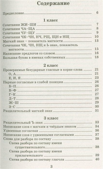 Купила пособие для занятий с ребенком в форме семейного образования. По каждой теме авторы дают правило, которое для лучшего восприятия помещено в рамку. Тут же дается пример правописания, что способствует лучшему запоминанию правила. Затем идут упражнения на заданную тему. Названия тем напечатаны более крупным шрифтом - тоже очень удобно. Дана подробная схема разбора слова по составу, даже мне, уже 35 лет назад закончившей начальную школу, вспомнилось!