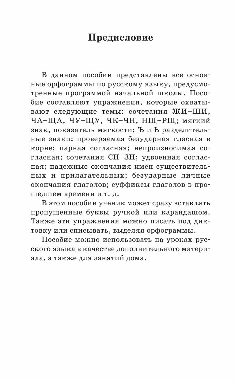 Данное пособие содержит не только словарные диктанты по работе над разными видами орфограмм, но и предложения для тренировки расстановки знаков препинания при обращении, в сложном предложении, при однородных членах. Эти правила пунктуации сейчас проходят уже в 3-4 классах начальной школы.