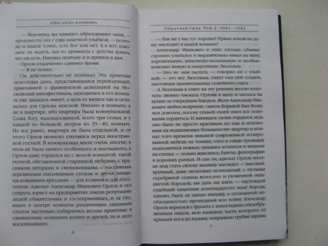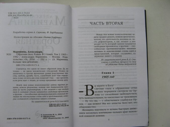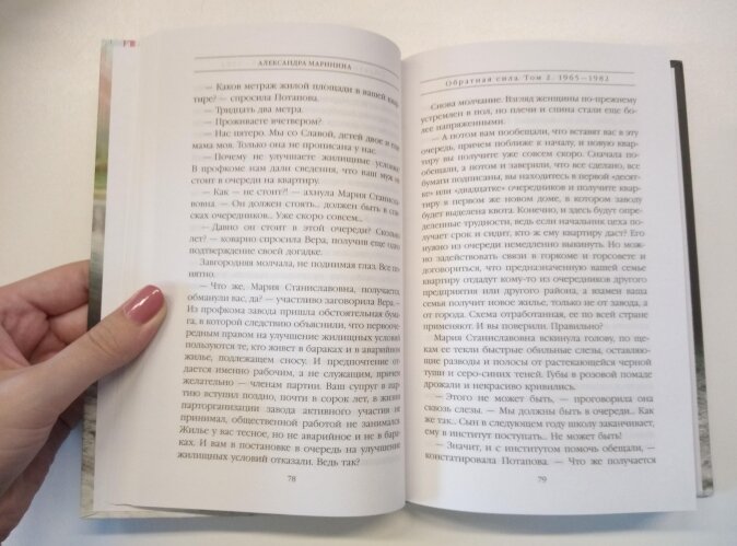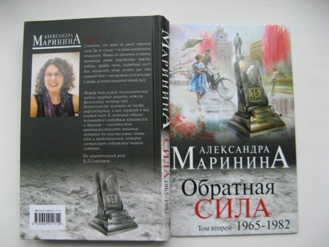 Обратная сила Второй том 1965-1982. Мама моя конечно довольна, она очень любит Александру Маринину. А мне ее последние романы не нравятся. В этой новинке( уже второй том) автор поднимает дела девятнадцатого века, и вокруг них выстраивает персонажей, притягивая за уши к теме. Не знаю, это на любителя.