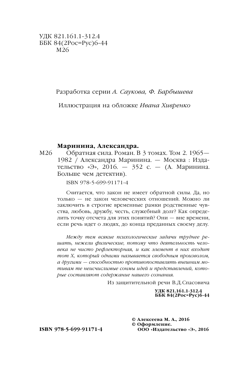 Обратная сила. Том 2. 1965-1982 (Александра Борисовна Маринина); Эксмо, 2016