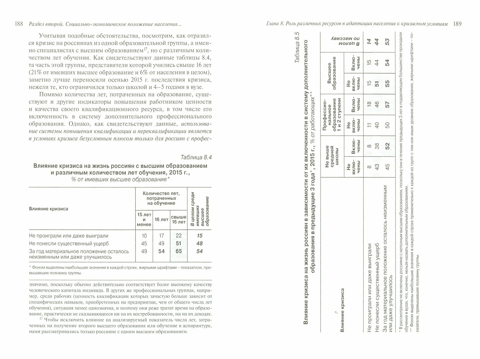 Данная книга является частью многолетнего мониторинга российского общества социологами ИС РАН. Каждый год они издают по 1-2 книги, рассматривая в многолетней перспективе различные аспекты жизни россиян. Интересно проследить по этим томикам, как менялось восприятие кризиса 2014-2016 гг.