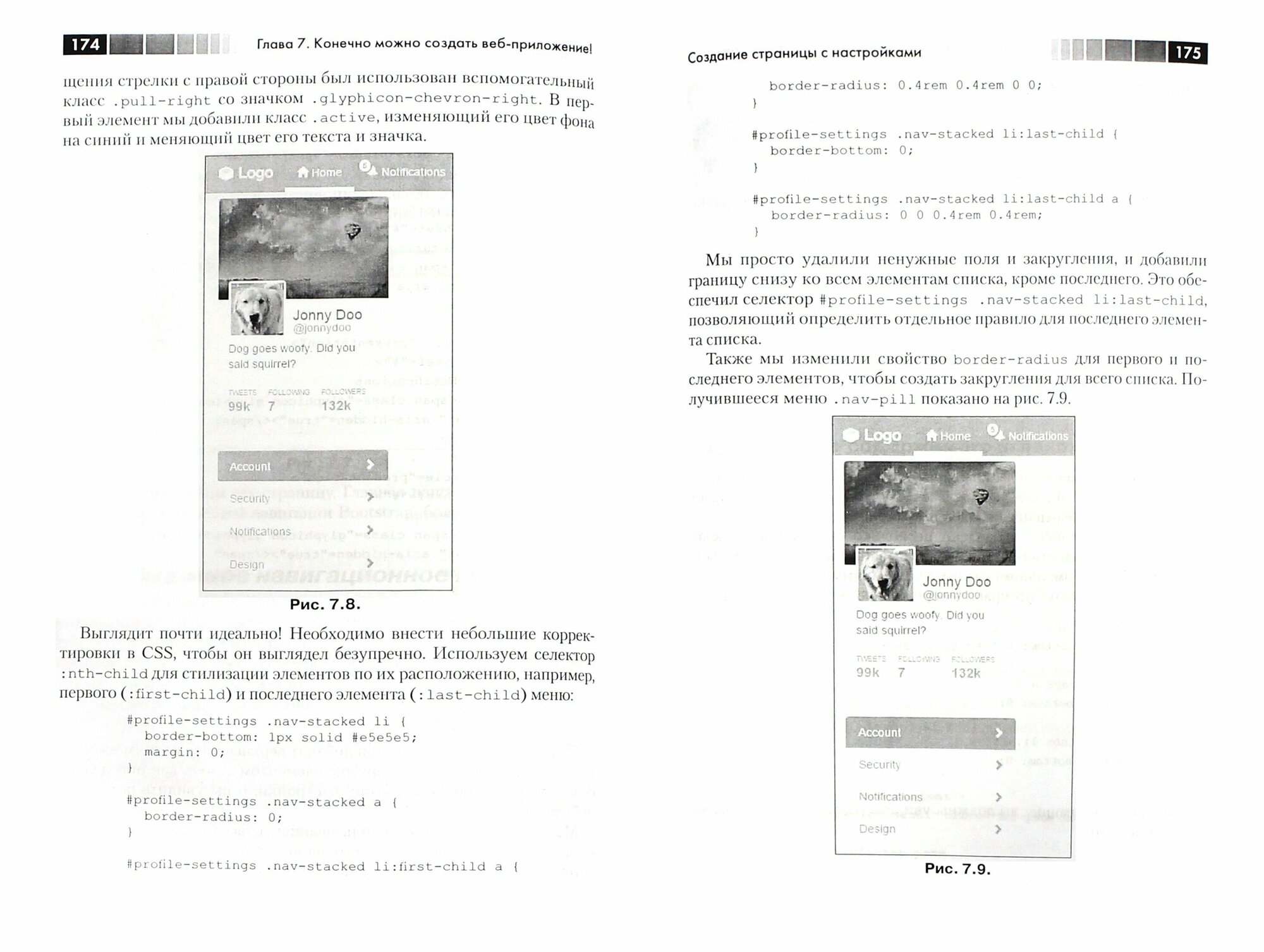 Хорошая книга. Подойдет для людей, только осваивающих бутстрап. Наглядные примеры с картинками и кодом позволяют без труда воспроизводить содержимое книги на своей машине, а подробное объяснение изложенного сделает из каждого, прочитавшего книгу, начинающего специалиста по bootstrap. Рекомендую