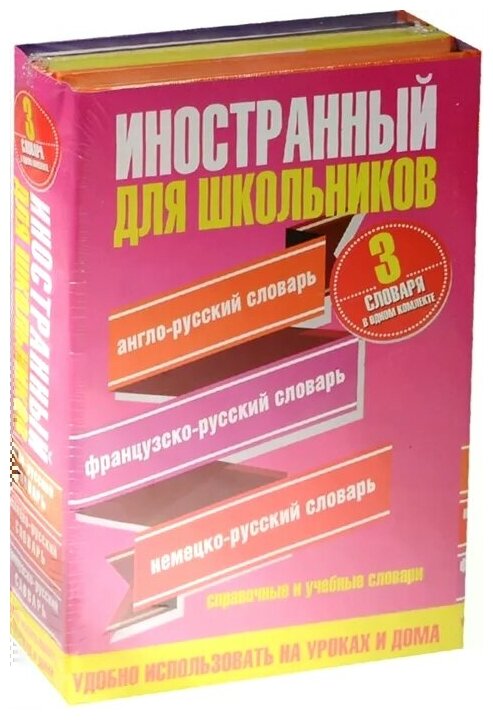 Ваш ребенок изучает несколько иностранных языков? Тогда комплект книг "Иностранный для школьников" для него просто незаменим. Комплект книг содержит 3 словаря, нужных каждому школьнику: англо-русский словарь, немецко-русский словарь, французско-русский словарь. Учебная и справочная информация, более 10 000 слов в каждом словаре, наглядное выделение базовой лексики, удобно использовать на уроках и дома.