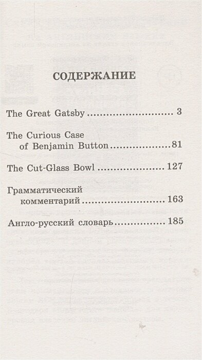 Текст очень сильно сокращён. Обратите внимание, что указанное в книге количество страниц должен занимать только "Великий Гэтсби", но в данной книги три произведения, и каждому отведено примерно треть книги. В итоге из целого абзаца может остаться только одно предложение (причем не измененное, т.е. полный смысл оно не передает), а из диалога героев - только одна фраза. Считаю кощунственно читать настолько обрезанную книгу.
