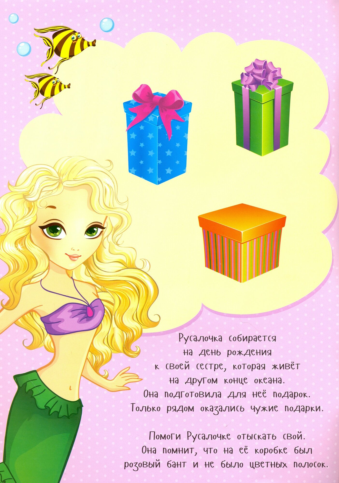 Наклеек много, они одноразовые. Есть и два задания: помочь Русалочке :)