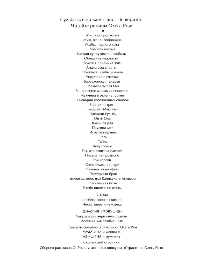 | Серия | Капризы и странности судьбы. Романы Олега Роя |