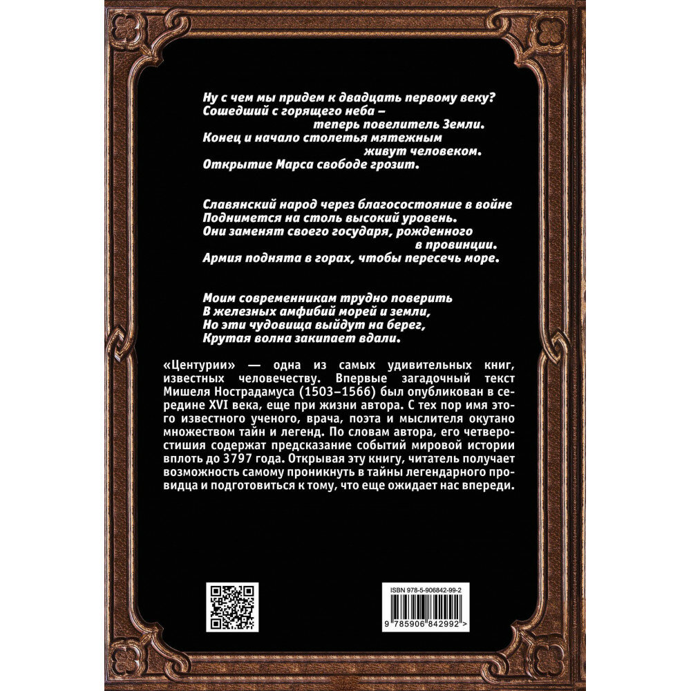 "Центурии" - одна из самых удивительных книг, известных человечеству. Впервые загадочный текст Мишеля Нострадамуса (1503-1566) был опубликован в середине XVI века, еще при жизни автора. С тех пор имя этого известного ученого, врача, поэта и мыслителя окутано множеством тайн и легенд. По словам автора, его четверостишия содержат предсказание событий мировой истории вплоть до 3797 года. Открывая эту книгу, читатель получает возможность самому проникнуть в тайны легендарного провидца и подготовиться к тому, что еще ожидает нас впереди.
