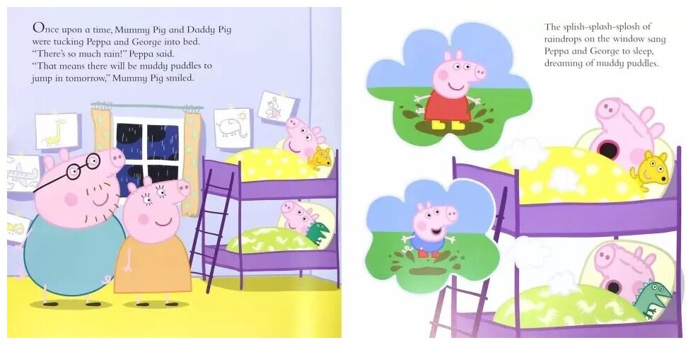 Once upon a time, there was a loveable, slightly bossy little piggy, named Peppa. She loved jumping up and down in muddy puddles. Peppa Pig and her little brother George don't mind rain, because rain means muddy puddles to jump in! But what happens when the rain is so heavy, torrential and even biblical? The result is a flood, and Granny and Grandpa Pig come to the rescue with their boat. And when the water disappears, it creates Peppa's dream come true - the world's biggest, muddiest puddle ever!