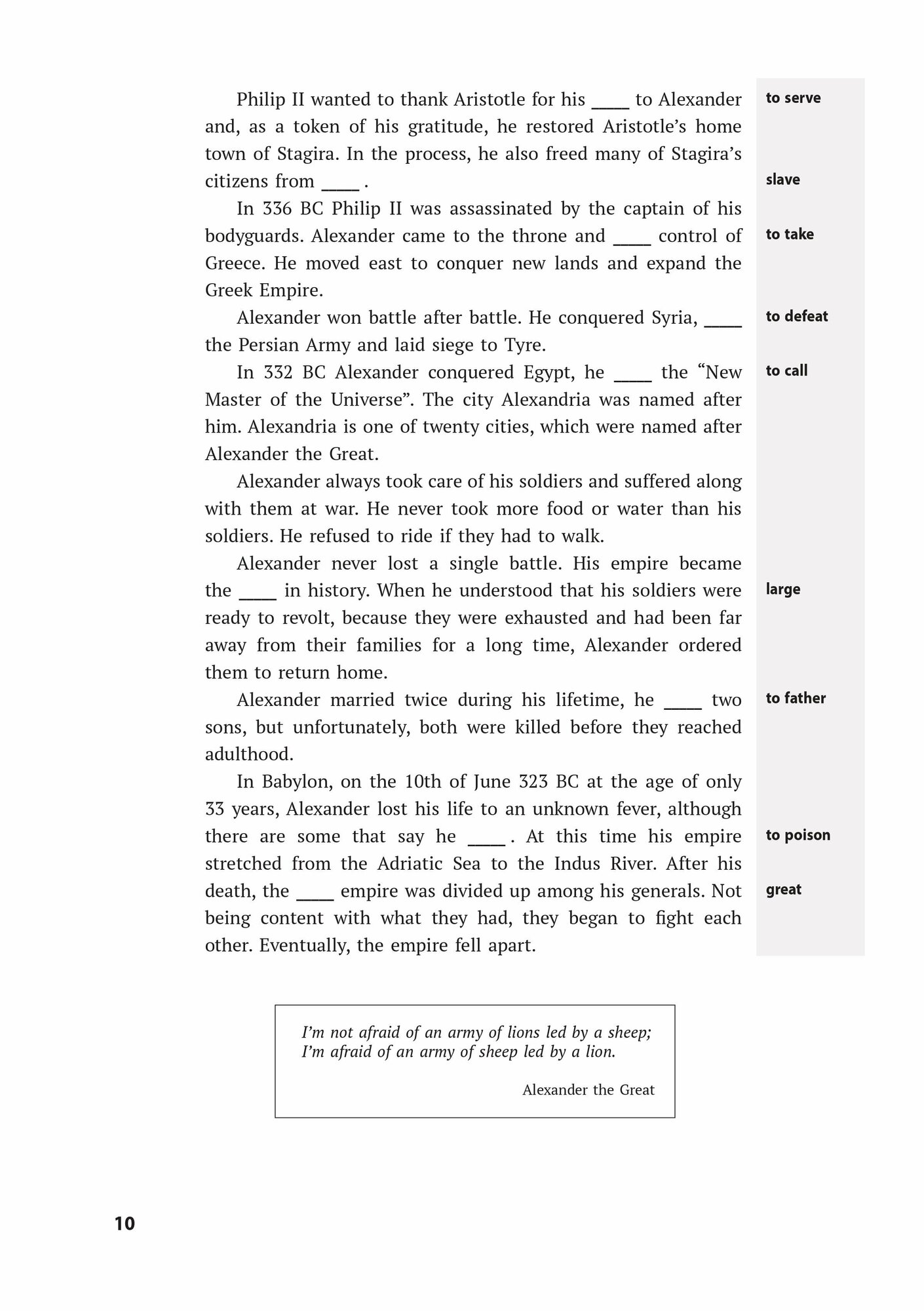 Тексты в книге познавательные и снабжены упражнениями. Подходит для учеников старшего звена и студентам. Дает новую лексику, отрабатывая уже имеющуюся. Отлично практикует грамматику. Лично мне информация (историческая), данная в книге, помогла при тестировании на английском языке. Да, и вообще много интересных фактов изложено.
