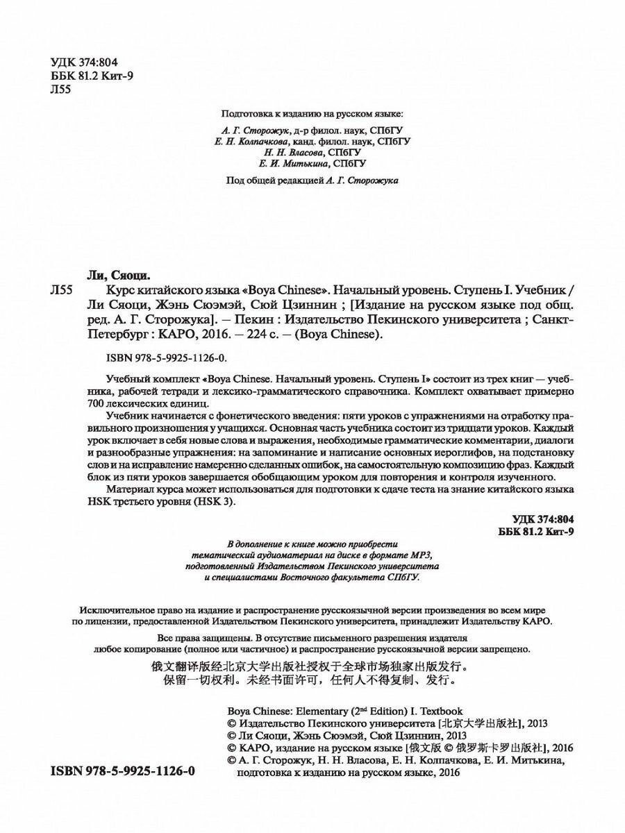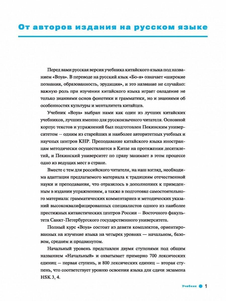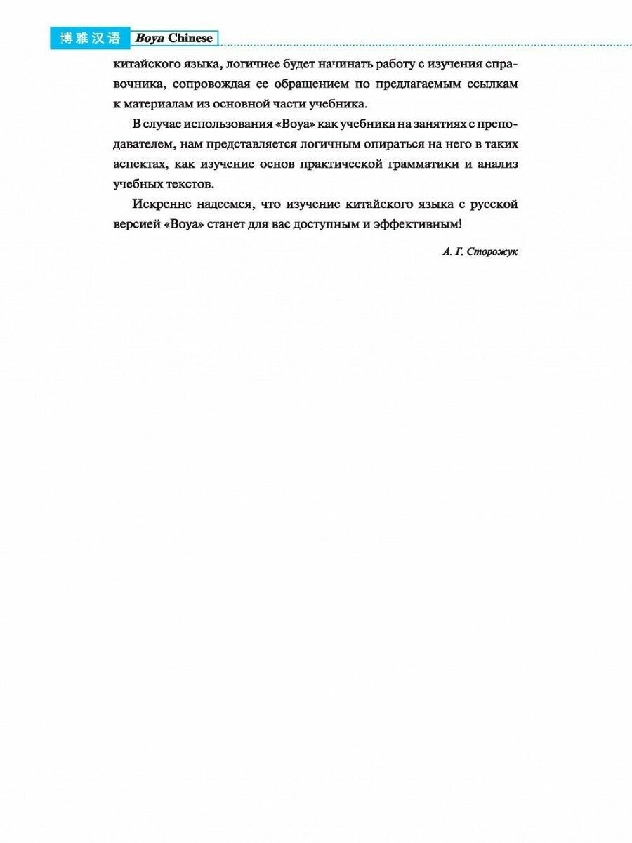 "Boya" - результат многолетней работы экспертов Пекинского университета. Издание на русском языке подготовлено специалистами Восточного факультета СПбГУ с учетом опыта традиций преподавания китайского языка в России. По сравнению с оригинальным учебником русское издание существенно дополнено грамматическими комментариями, новыми упражнениями, словарем и ключами к упражнениям.