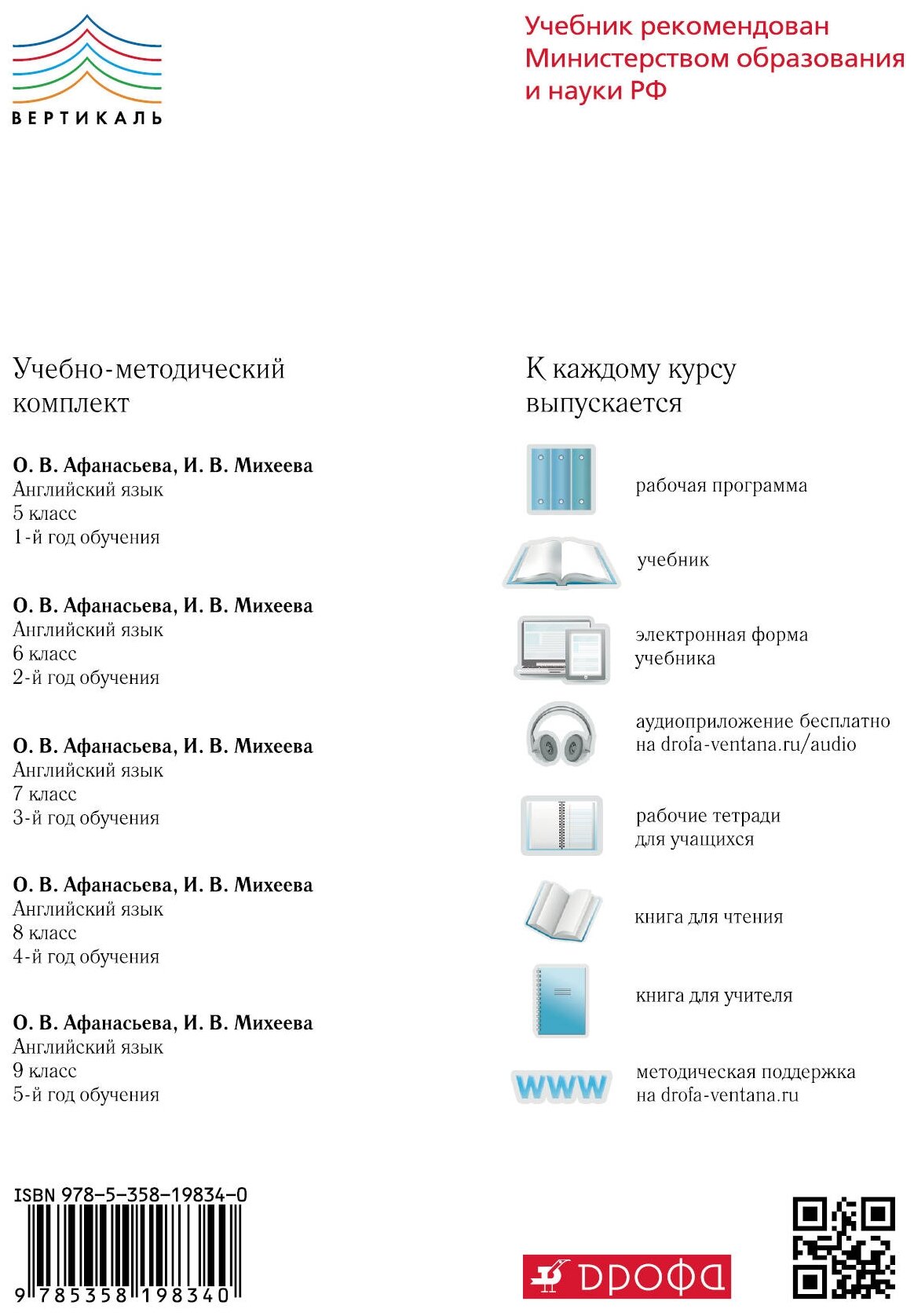 Учебник, созданный известными специалистами в области преподавания английского языка О. В. Афанасьевой и И. В. Михеевой, предназначен для учащихся 9 класса и является основным компонентом учебно-методического комплекса для пятого года обучения, в который также входят рабочая тетрадь, электронное приложение, аудиоприложение, книга для учителя и методическое пособие к данной линии. Учебник переработан в соответствии с требованиями Федерального государственного образовательного стандарта основного общего образования, рекомендован Министерством образования и науки Российской Федерации.