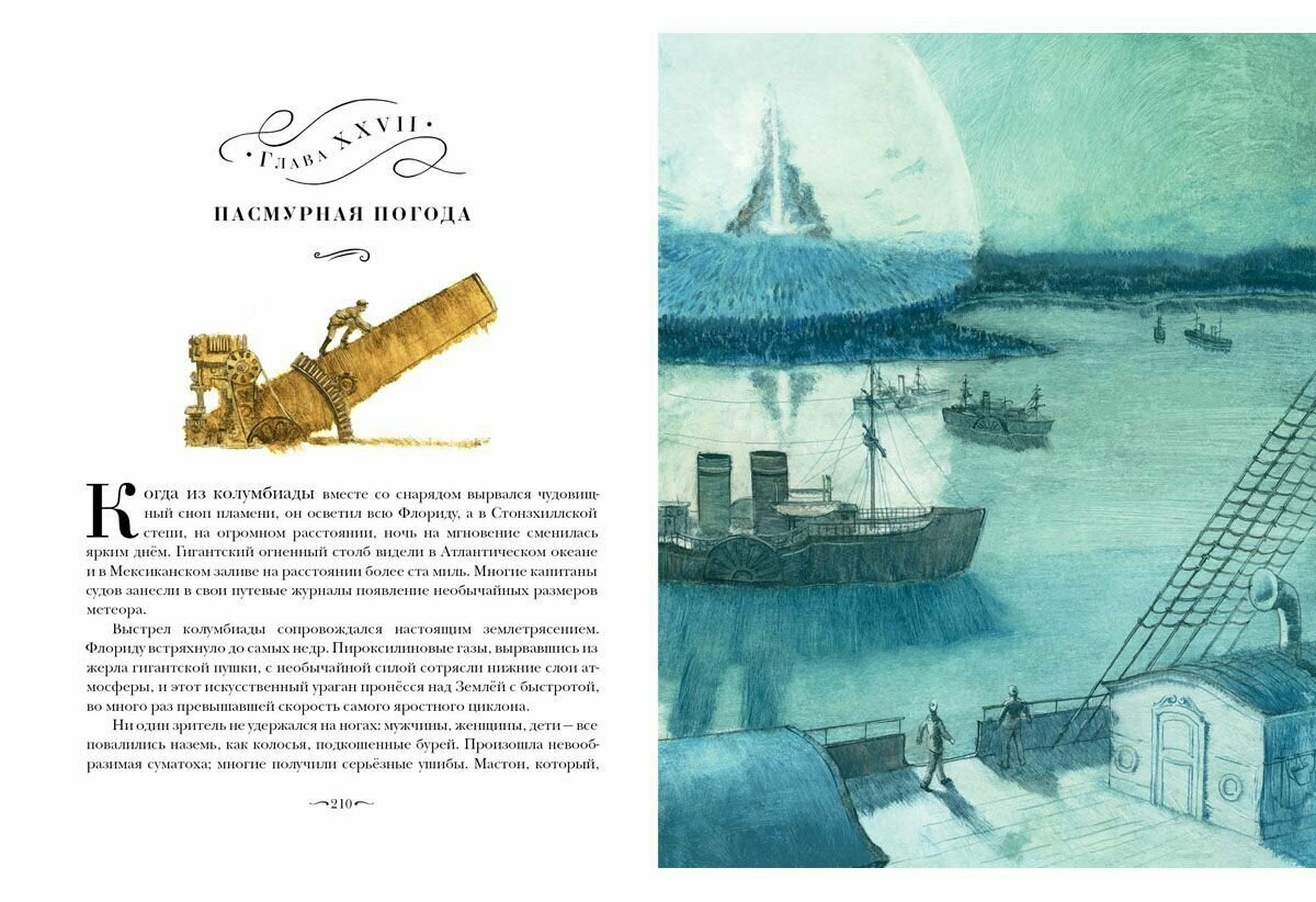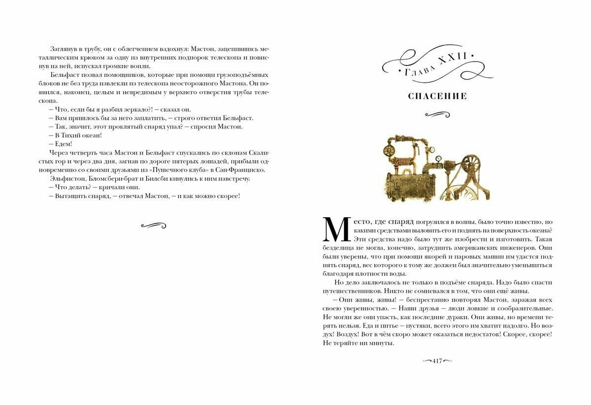 Приключения участников Пушечного клуба насчитывает 3 произведения, в этой книге представлены первое и второе. Есть 3 варианта перевода: М. Вовчок и М. Вахтеровой, самостоятельно М. Вовчок, П. М. Ольхина. Не совсем понятно, данный перевод первый или второй, тк единоличный перевод украинской писательницы и переводчицы М. Вовчок (хотя и использовавшей в работе перводы тн литературных негров) носит название Из пушки на Луну, а название указанное на обложеке издания использовалось для совместного перевода М. Вовчок и М. Вахтеровой - ?