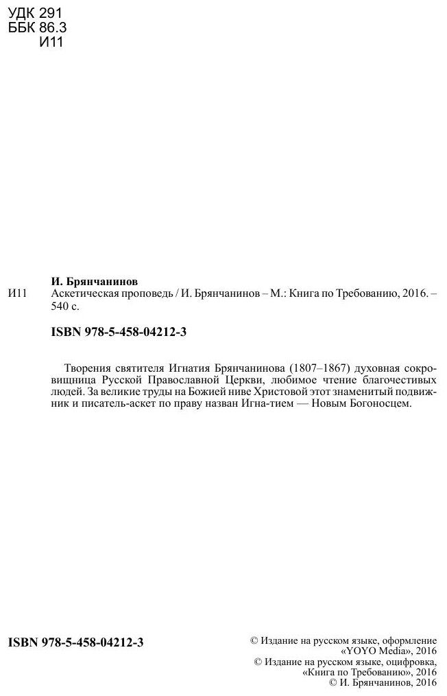 Книга: Аскетическая проповедь (Святитель Игнатий Брянчанинов); Книга по Требованию, 2016