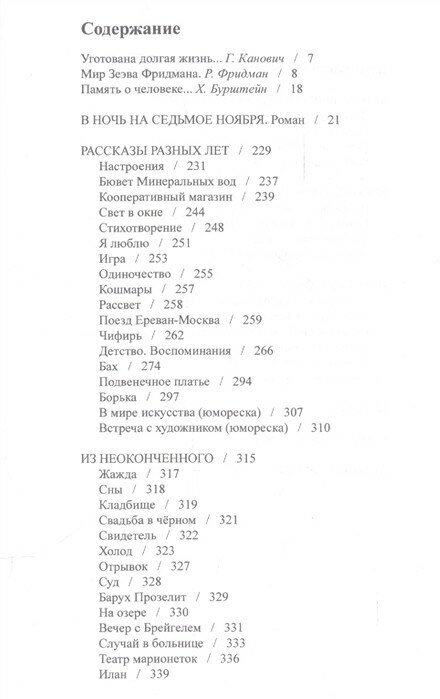 Собранные в книге роман "В ночь на седьмое ноября", рассказы, дневники, публицистика дают возможность познакомиться с литературным творчеством Зеэва Фридмана (1960-2009) - профессионального музыканта. В книге читатель найдёт размышления автора о добре и зле, преступлении и наказании, любви и предательстве, о подлинных духовных ценностях человека.