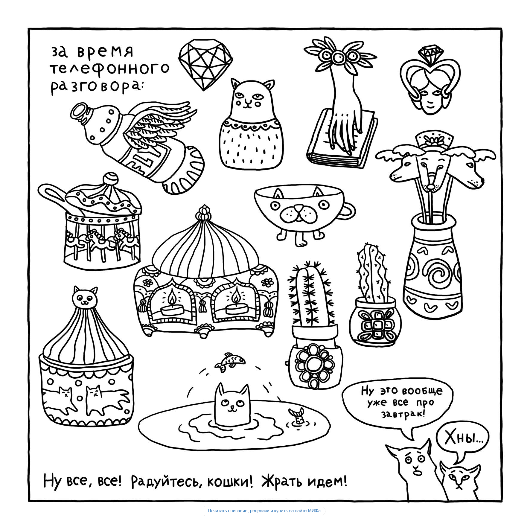 Мне подарили эту книгу на день рождения. Счастью моему нет придела. Яна Франк сделала раскраску о счастье, вдохновении, взлетах и падениях, отчаянии и надежде. А еще там есть котики! Много котиков! Благодаря им, страницы книги оживают, вы чувствуете себя, как будто вы там, плечом к плечу работаете и живете вместе с Яной, творите, переживаете, вдохновляетесь. В общем, удивительная раскраска, я оценила! Много нескучных вечеров меня ждет :-))
