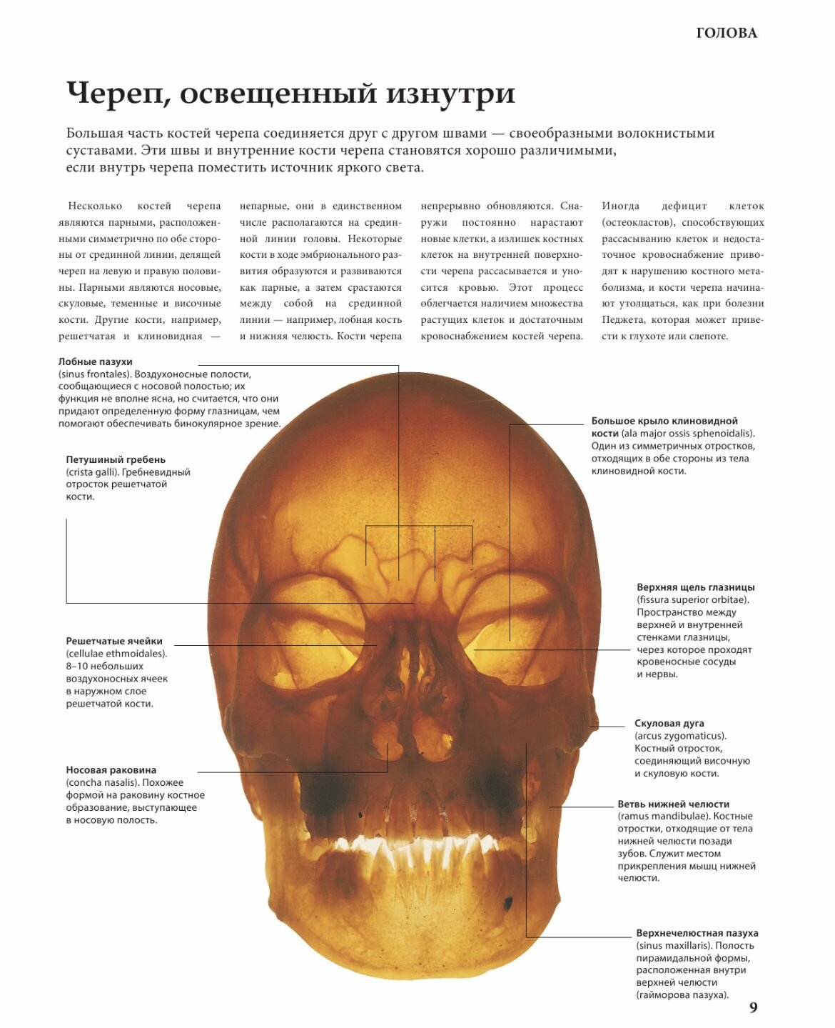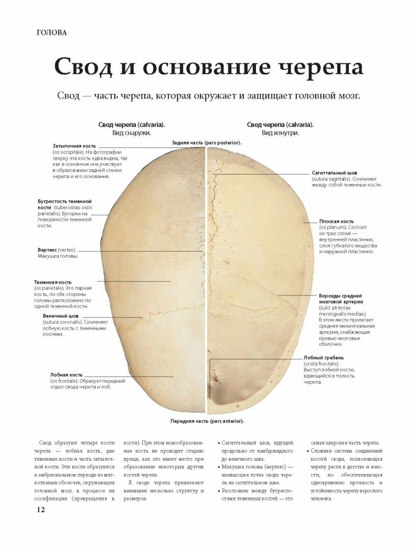 Великолепно иллюстрированное издание удобно в использовании: материал разбит на разделы по анатомическим структурам, начиная с черепа и заканчивая костями стопы. Дано общее представление о костях, мышцах, нервах, мягких тканях и органах, показано их взаимодействие друг с другом. Цветные фотографии добавляют наглядности.