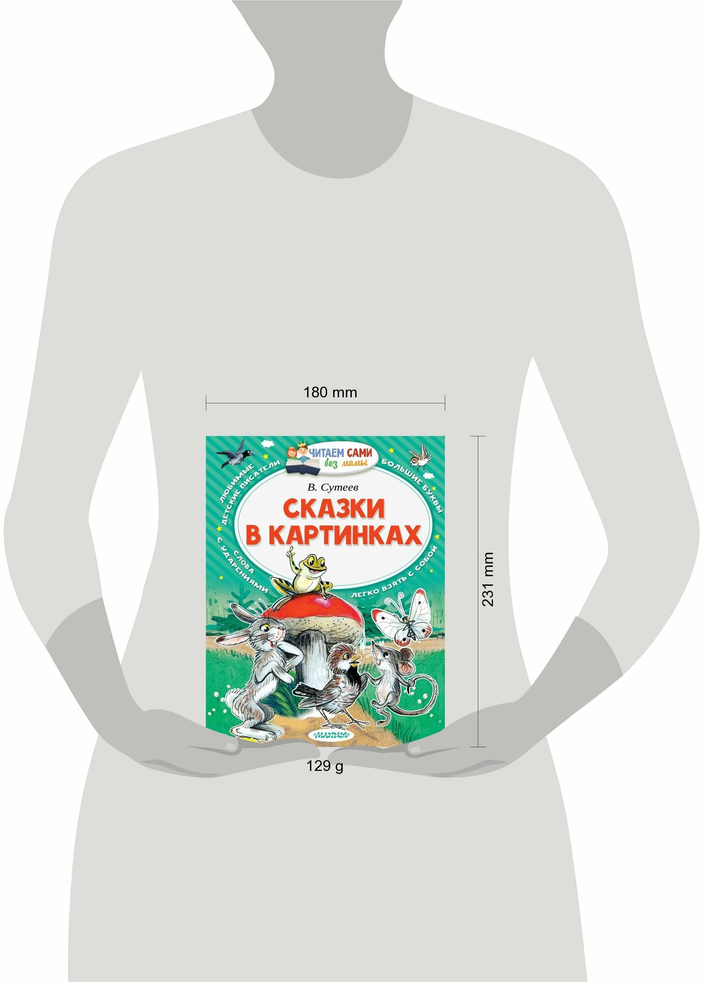 книга В. Сутеева "Сказки в картинках" прекрасно подходит для первого самостоятельного чтения. Ведь в этом сборнике удобного формата короткие сказки, большие буквы, слова с ударениями и много цветных иллюстраций. Книжки серии "Читаем сами без мамы" можно взять с собой в дорогу, на прогулку и читать вместе с друзьями!