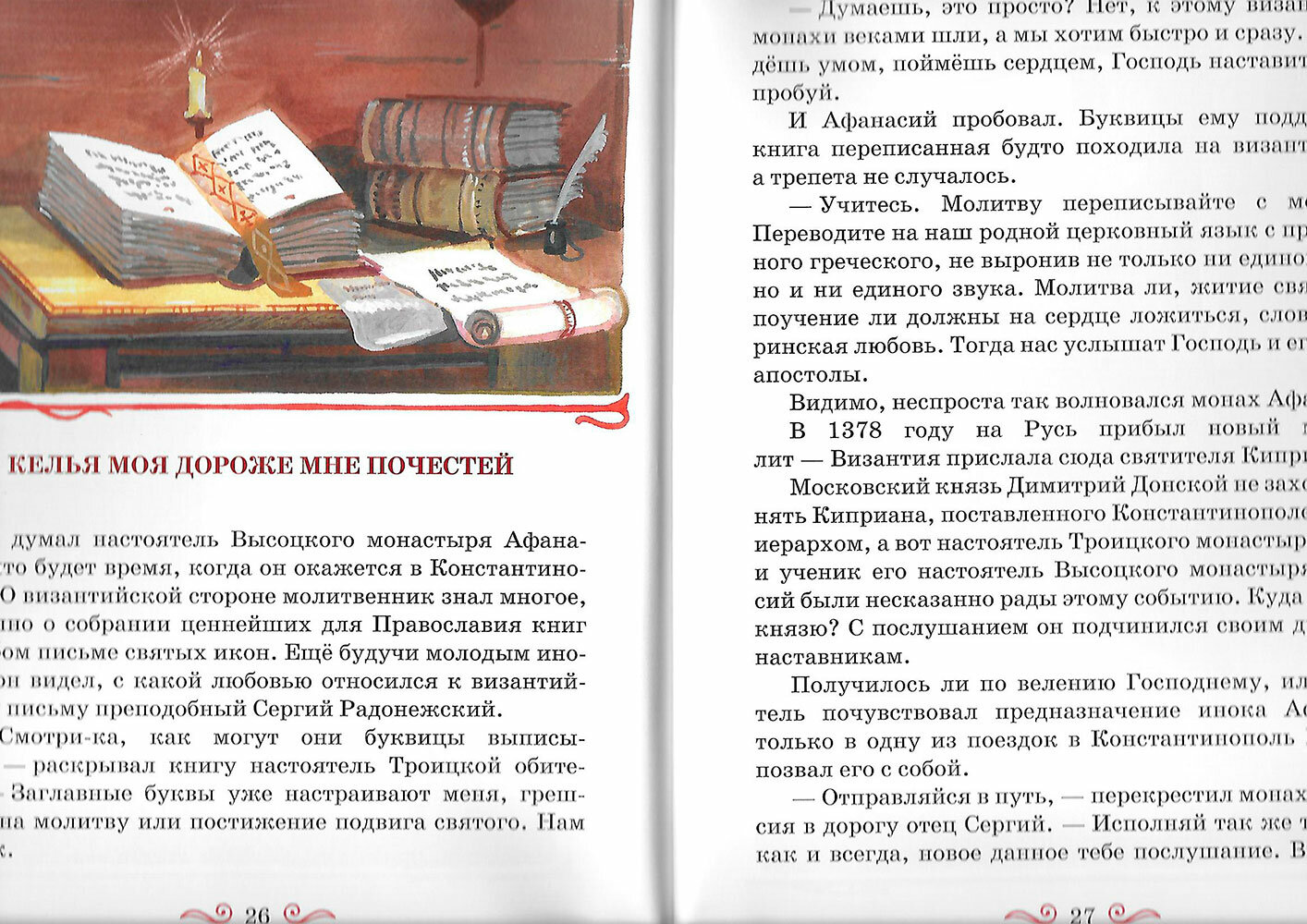 На страницах этой книги вы познакомитесь с преподобным Афанасием Высоцким, который с ранних лет полюбил храм Божий и, решив посвятить себя иноческой жизни, отправился к преподобному Сергию Радонежскому. А также узнаете о том, как преподобный Афанасий занимался переписыванием церковных книг, как стал устроителем Высоцкого монастыря, как оказался в Константинополе и как этот великий подвижник перевёл с греческого языка богослужебный устав "Око церковное".