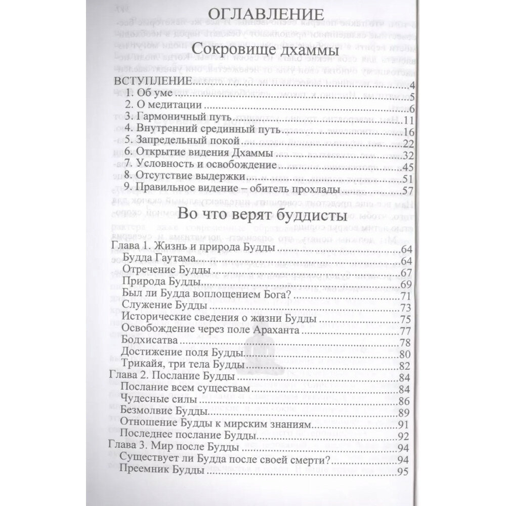 Книга состоит из двух произведений, принадлежащих Шри Дхаммананде и Аджану Ча, известным ученым буддистам из Таиланда и Малайзии. "Братья, пока луна и солнце не видны в мире, повсюду господствует кромешная тьма, царствует тьма смущения. Ночь не отличается от дня, как и времена месяца и года". "Братья, но когда в мире показываются луна и солнце, на землю изливается яркий свет. И больше нет кромешной тьмы, исчезает тьма смущения. И можно различать времена месяца и года"."Братья, точно так же, пока нет Араханта, Высшего Будды, мир не залит лучистым светом. Повсюду господствует кромешная тьма, царствует тьма смущения. Никто не проповедует, не учит, не наставляет, не проясняет, не анализирует, не открывает людям Четыре Благородные Истины". "О чем эти благородные истины? О существовании страдания, причине страдания, прекращении страдания и способе прекращения страдания". "Поэтому, братья, постарайтесь осознать, что страдание существует, что у страдания есть причина.