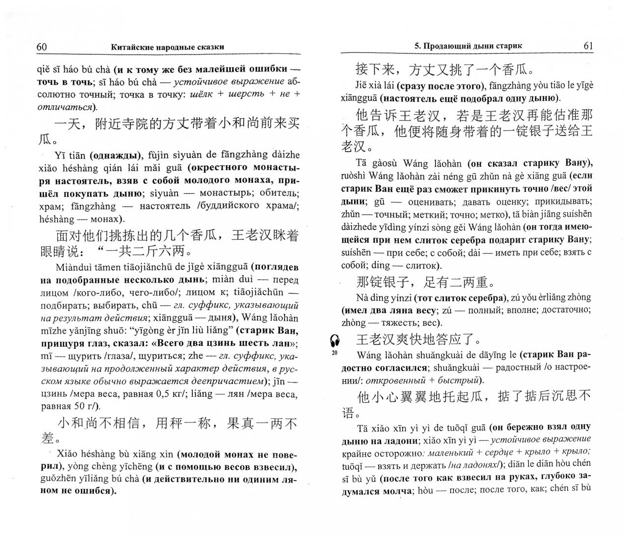 Предлагаемое занимательное и несложное чтение поможет вам войти в мир китайского языка. Сказки, представленные в книге, адаптированы (без упрощения текста оригинала) по методу Ильи Франка, снабжены транскрипцией, дословным переводом на русский язык и необходимым лексико-грамматическим комментарием. Уникальность метода заключается в том, что запоминание слов и выражений происходит за счет их повторяемости, без заучивания и необходимости использовать словарь.