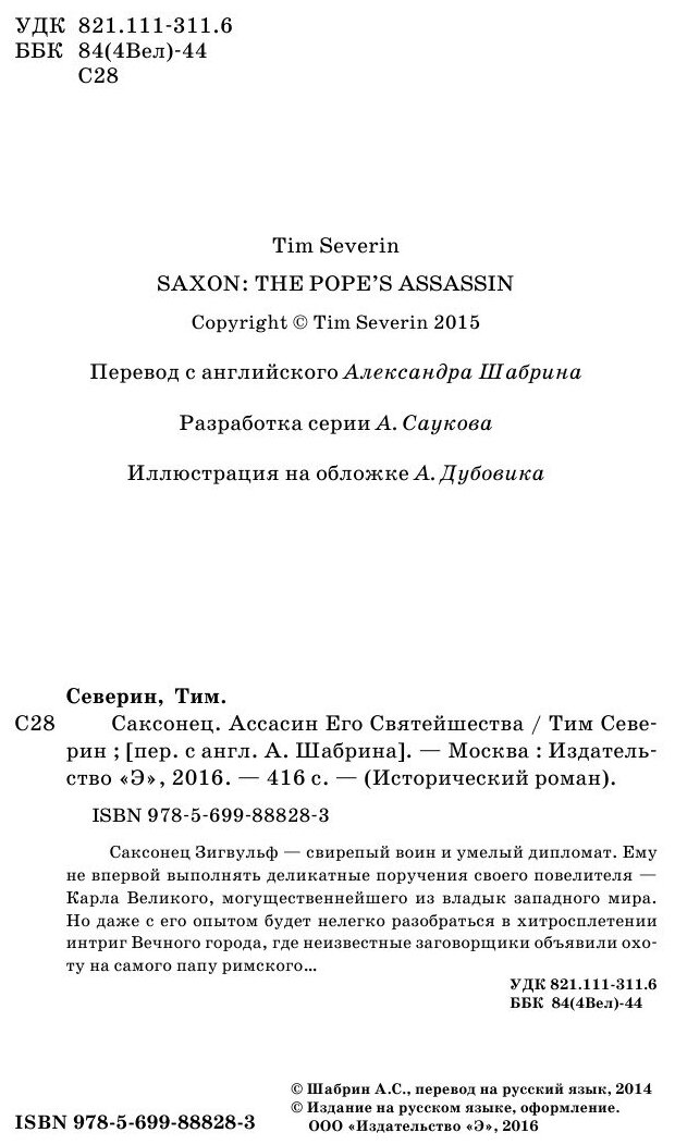 Саксонец. Ассасин Его Святейшества (Северин Тим); Эксмо, Редакция 1, 2016