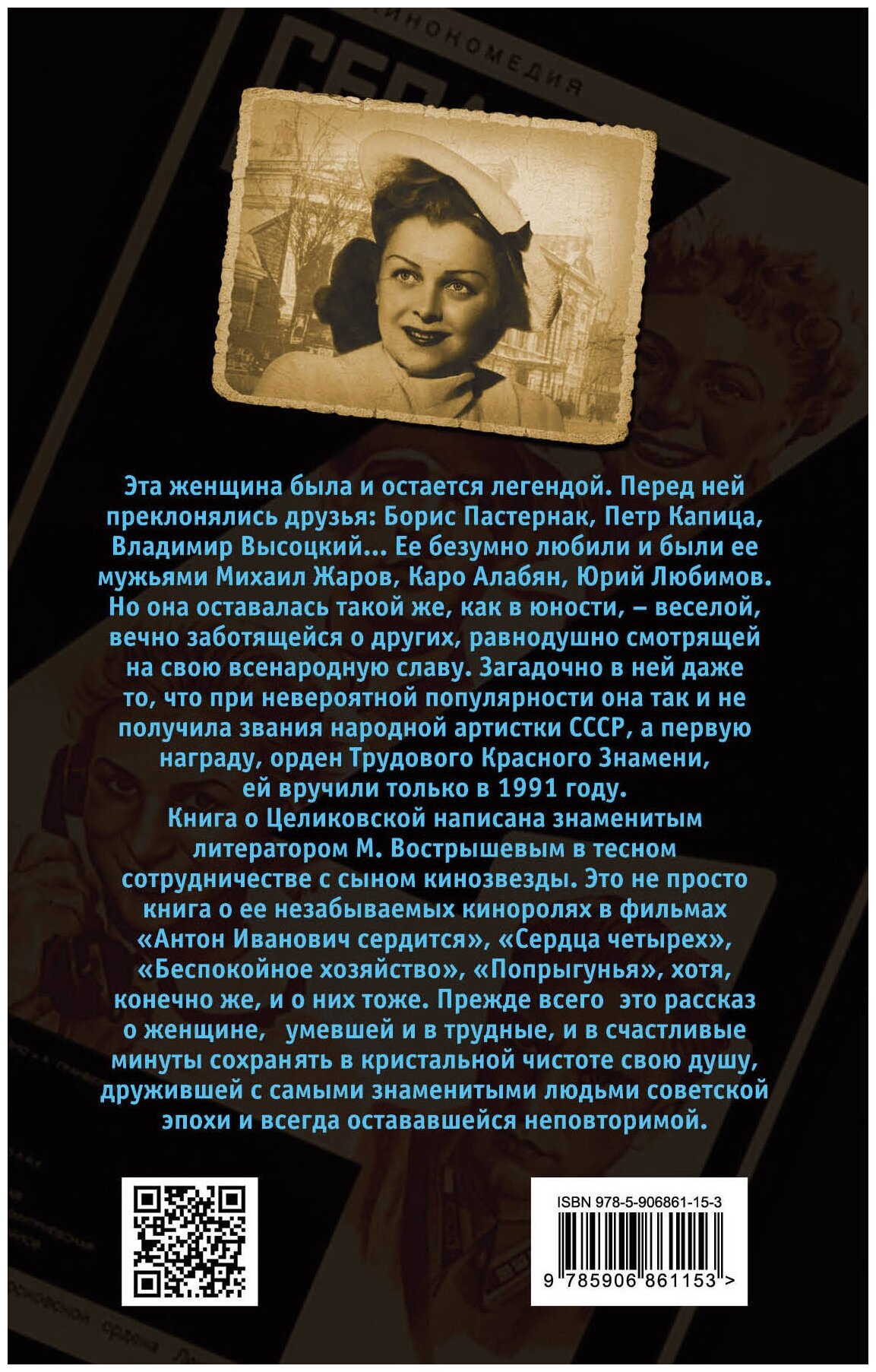 Эта женщина была и остается легендой. Перед ней преклонялись друзья: Борис Пастернак, Петр Капица, Владимир Высоцкий. Ее безумно любили и были ее мужьями Михаил Жаров, Каро Алабян, Юрий Любимов. Но она оставалась такой же, как в юности, - веселой, вечно заботящейся о других, равнодушно смотрящей на свою всенародную славу. Загадочно в ней даже то, что при невероятной популярности она так и не получила звания народной артистки СССР, а первую награду, орден Трудового Красного Знамени, ей вручили только в 1991 году. Книга о Целиковской написана знаменитым литератором М. Вострышевым в тесном сотрудничестве с сыном кинозвезды. Долгими вечерами сын Людмилы Васильевны Александр рассказывал о том, какой же на самом деле была его легендарная мать. Это не просто книга о ее незабываемых киноролях в фильмах "Антон Иванович сердится", "Сердца четырех", "Беспокойное хозяйство", "Попрыгунья", хотя, конечно же, и о них тоже. Прежде всего, это рассказ о женщине, сумевшей и в трудные, и в счастливые минуты сохранить в кристальной чистоте свою душу, дружившей с самыми знаменитыми людьми советской эпохи и всегда остававшейся неповторимой.