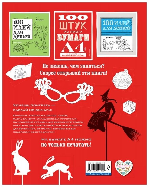 Не знаешь, чем заняться? Хочешь сделать коробочку для подарка, но не знаешь, как? Завтра карнавал, а у тебя нет ни маски, ни галстука-бабочки? Планируешь вечеринку для друзей и хочешь поразить их прикольным оформлением или неожиданной идеей? Скорее открывай эту книгу - бесценный источник простых и оригинальных идей, для воплощения которых нужны только ножницы (можешь, конечно, воспользоваться еще клеем и фломастерами, но это необязательно) и бумага А4! В книге «100 штук из листа бумаги А4» найдется множество идей для поделок из обычной бумаги, а почти 100 разных интересных поделок можно вырезать непосредственно из книги.