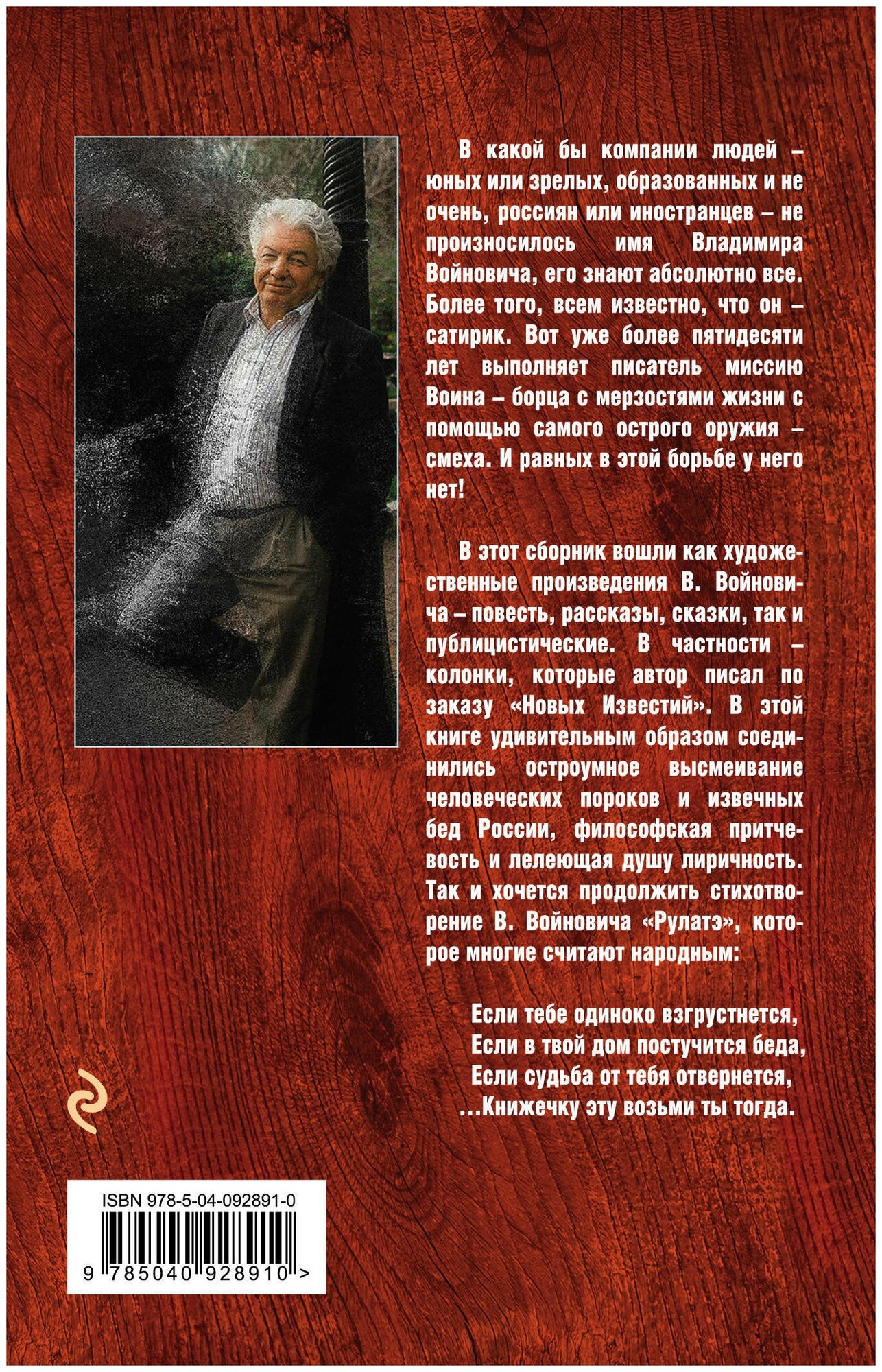 В этот сборник вошли как художественные произведения В.Войновича - повесть, рассказы, сказки, так и публицистические. В частности - колонки, которые автор писал по заказу "Новых Известий". В этой книге удивительным образом соединились остроумное высмеивание человеческих пороков и извечных бед России, философская притчевость и лелеющая душу лиричность. Так и хочется продолжить стихотворение В.Войновича "Рулатэ", которое многие считают народным: Если тебе одиноко взгрустнется, Если в твой дом постучится беда, Если судьба от тебя отвернется, …Книжечку эту возьми ты тогда