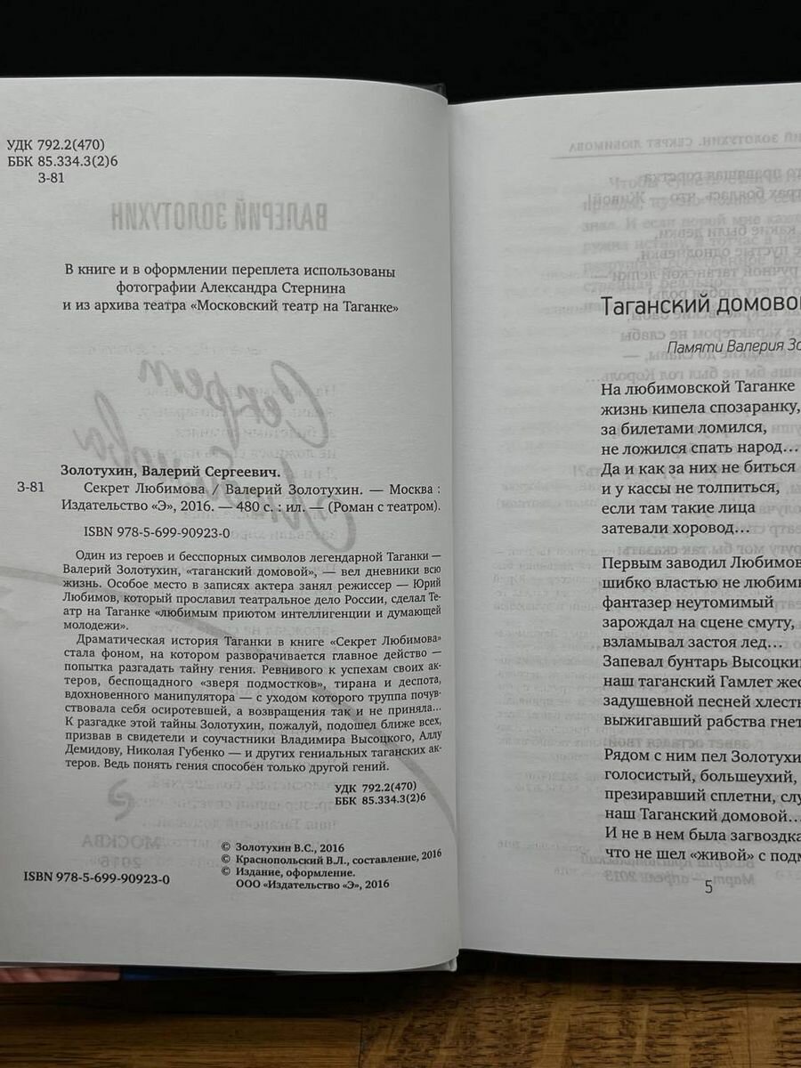 Книга: Секрет Любимова (Золотухин Валерий Сергеевич); ООО "Издательство "Эксмо", 2016