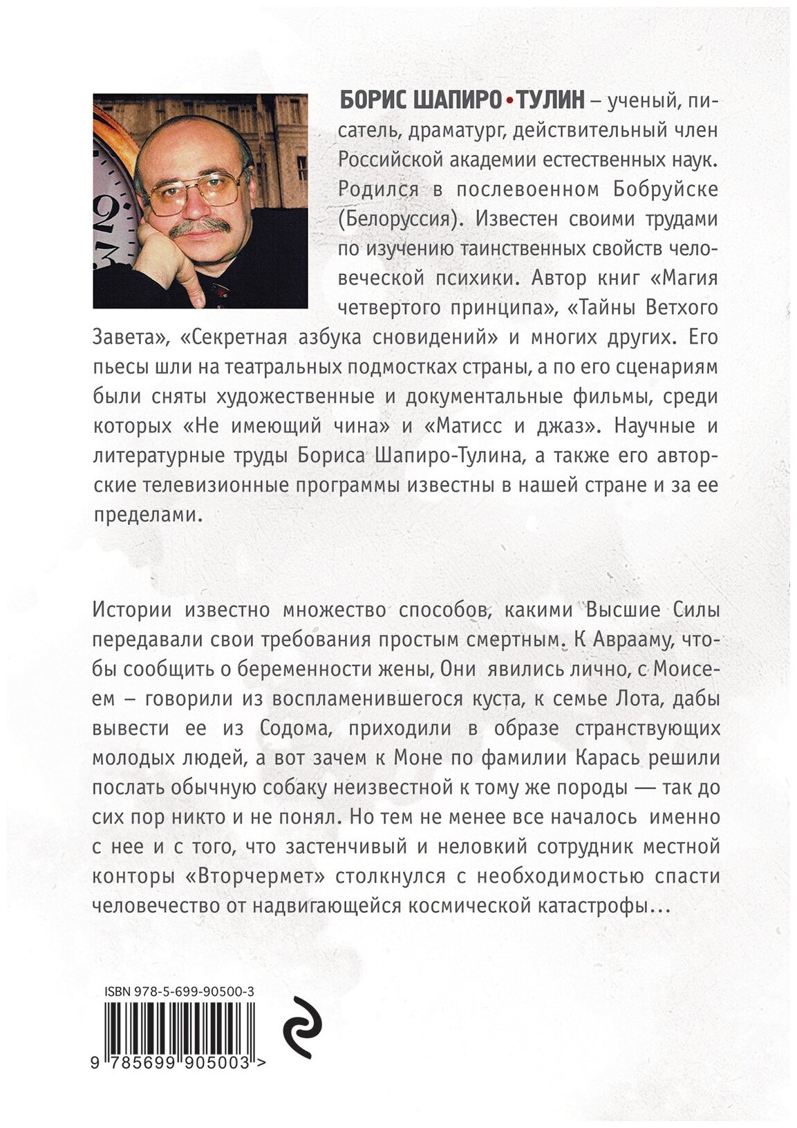 Истории известно множество способов, какими Высшие Силы передавали свои требования простым смертным. К Аврааму, чтобы сообщить о беременности жены, Они явились лично, с Моисеем - говорили из воспламенившегося куста, к семье Лота, дабы вывести ее из Содома, приходили в образе странствующих молодых людей, а вот зачем к Моне по фамилии Карась решили послать обычную собаку неизвестной к тому же породы - так до сих пор никто и не понял. Но, тем не менее, все началось именно с нее и с того, что застенчивый и неловкий сотрудник местной конторы "Вторчермет" столкнулся с необходимостью спасти человечество от надвигающейся космической катастрофы…