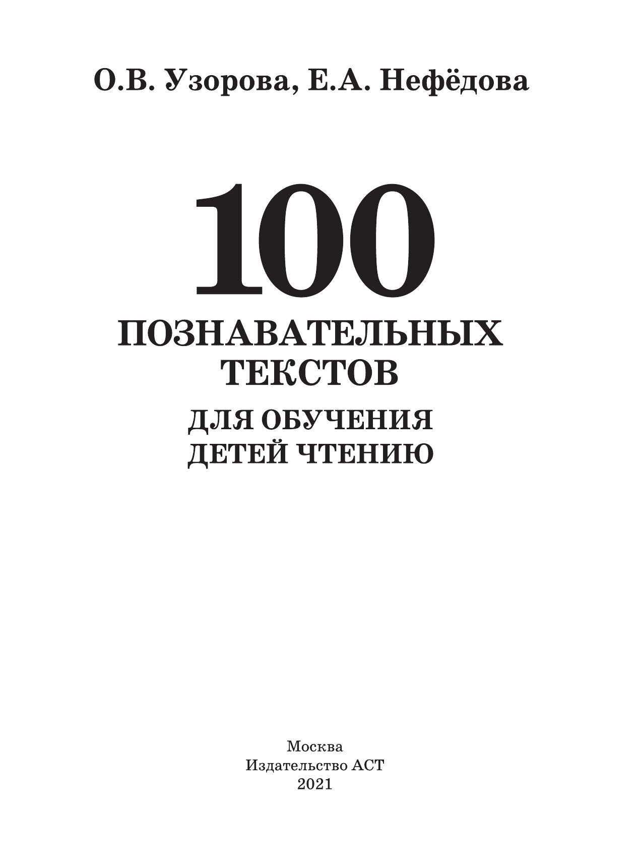 100 познавательных текстов для обучения детей чтению (Узорова Ольга Васильевна, Нефедова Елена Алексеевна); ООО "Издательство Астрель", 2020
